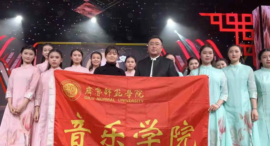 该台晚会立足我省沿黄河九城市民间文艺及非遗节目,让优秀传统文化融合当代生活,借助网络传播,呈现新时代的民间民俗艺术特色。音乐学院学子始终努力学习、听从指挥、勇挑重担、勇往直前,用专业素养严格要求自己,以优美的舞姿和良好的形象向电视台提交了一份满意的答卷。窈窕身影随着音律跃动,琴键琴弦奏出琴音悠悠,他们装点了民俗春晚的舞台,以精湛的技艺和优良的作风为齐鲁师范学院赢得了荣誉。