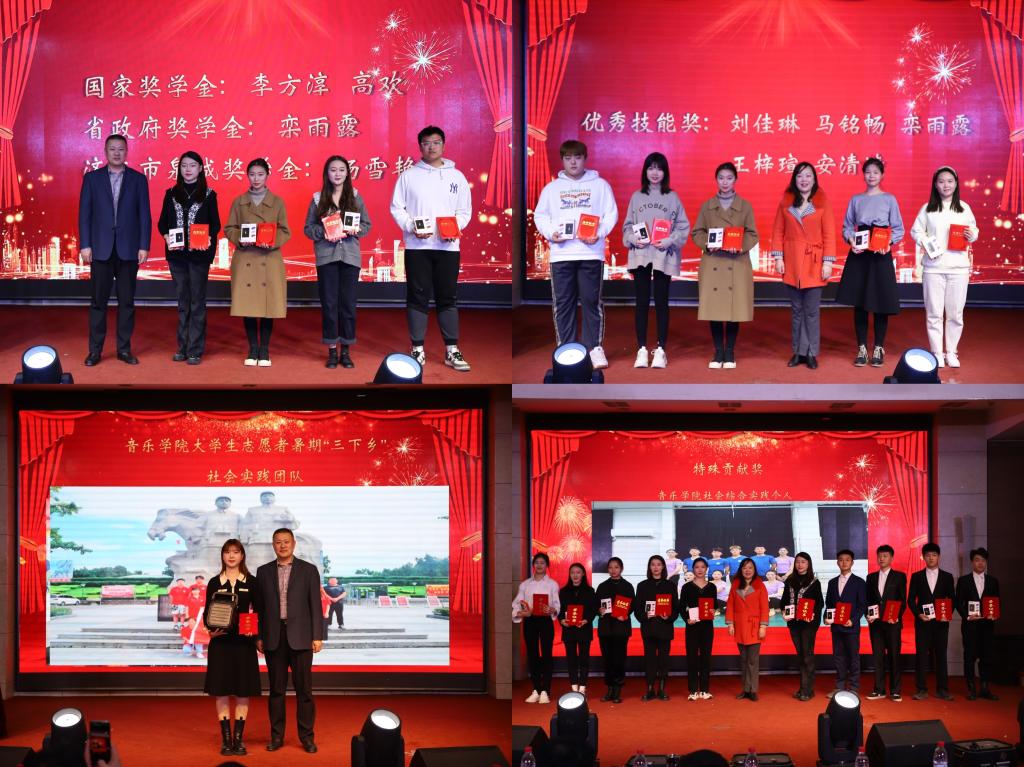 演出开始前,大屏幕播放了学院领导老师们的祝福视频,表达了对即将到来的2022年的美好祝愿。晚会分颁奖典礼和师生文艺演出两个篇章,在颁奖典礼环节,表彰了2021年度在学风引领、科研立项、学科竞赛、社会实践等方面取得优秀成绩的个人和集体。