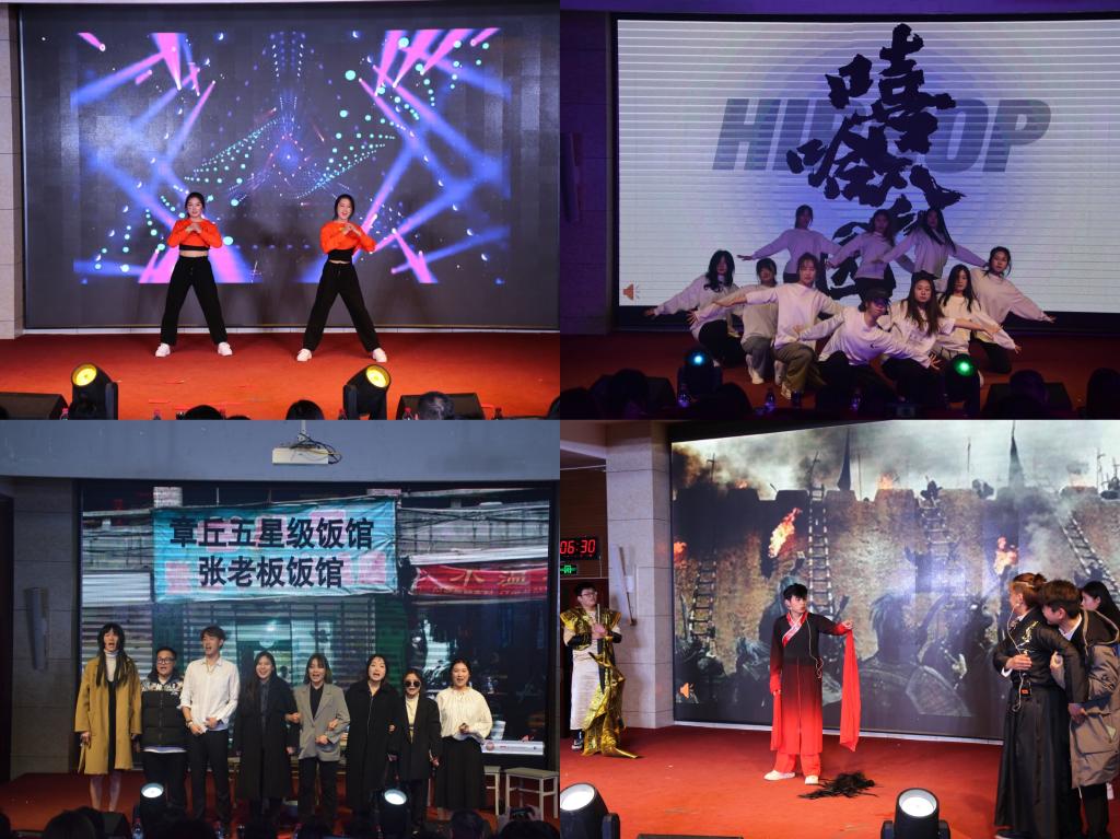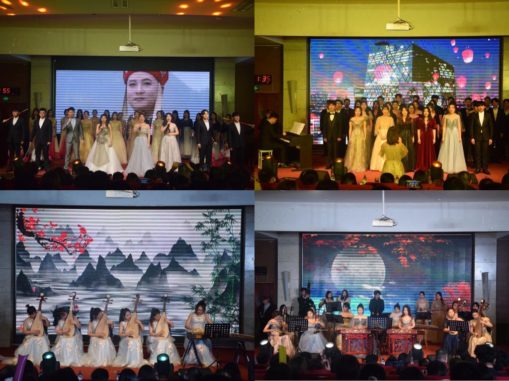 晚会在舞蹈《律动的青春》中拉开帷幕,喜庆的舞蹈烘托出祥和的气氛;张明瑞老师和21级同学们带来的《敢问路在何方》充分揭示出这种轻松、豪迈、举重若轻的人生态度,充满哲理意味;民乐合奏《拔根芦柴花》带我们走进了江苏的秧田上;小品《同学聚会》展现出同学之间的感情是最真挚的,应相互扶持,互相帮助;玩转音乐,舞动青春,歌曲联唱《漠河舞厅》等轮番登场;《灯火里的中国》歌颂了人民美好生活、歌颂了祖国的繁荣昌盛;小品《霸王别急》在欢笑声中展现出应该正确对待历史文化;器乐合奏《忆江南》烘托出中华传统文脉生生不息、赓续不断的主题;最后学院全体成员合唱《明天会更好》,表达了同学们对学院的美好祝愿。