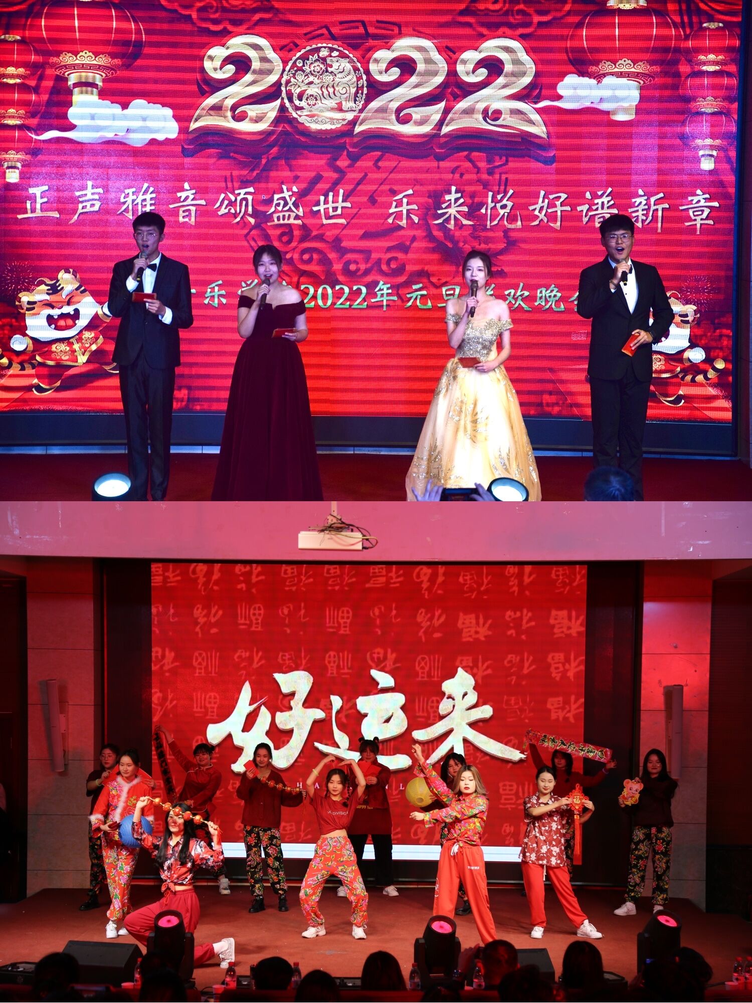 12月16日晚,正声雅音颂盛世 乐来悦好谱新章---音乐学院2022元旦文艺晚会在图书馆报告厅成功举办。齐鲁师范学院党委副书记刘宝君,齐鲁师范学院党委委员、组织部部长李伯伟,党委组织部正处级组织员马艳,图书馆副馆长王志勇,音乐学院院长万梅红,党总支书记王允华及学院办公室、团总支、专业教师们莅临晚会现场。