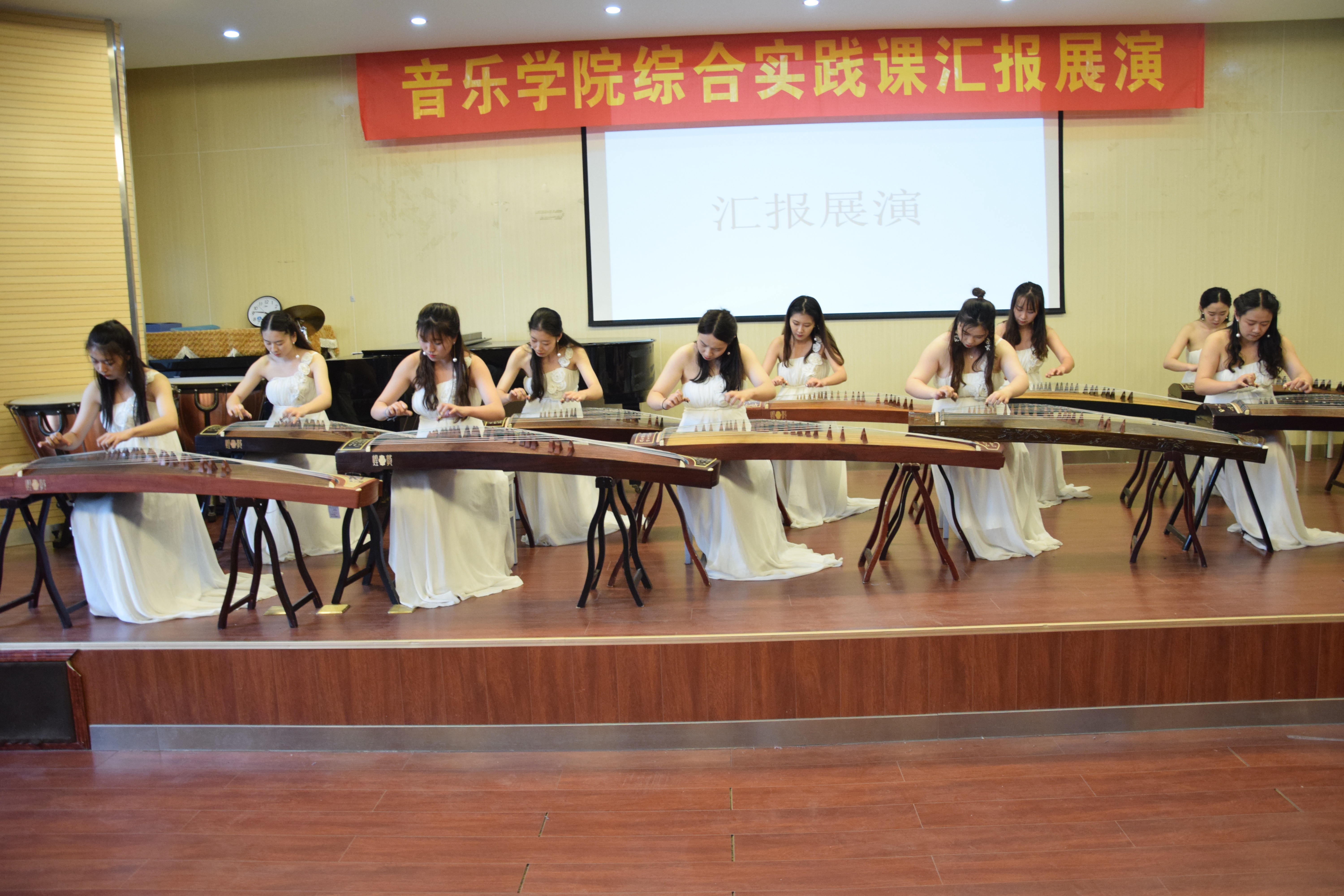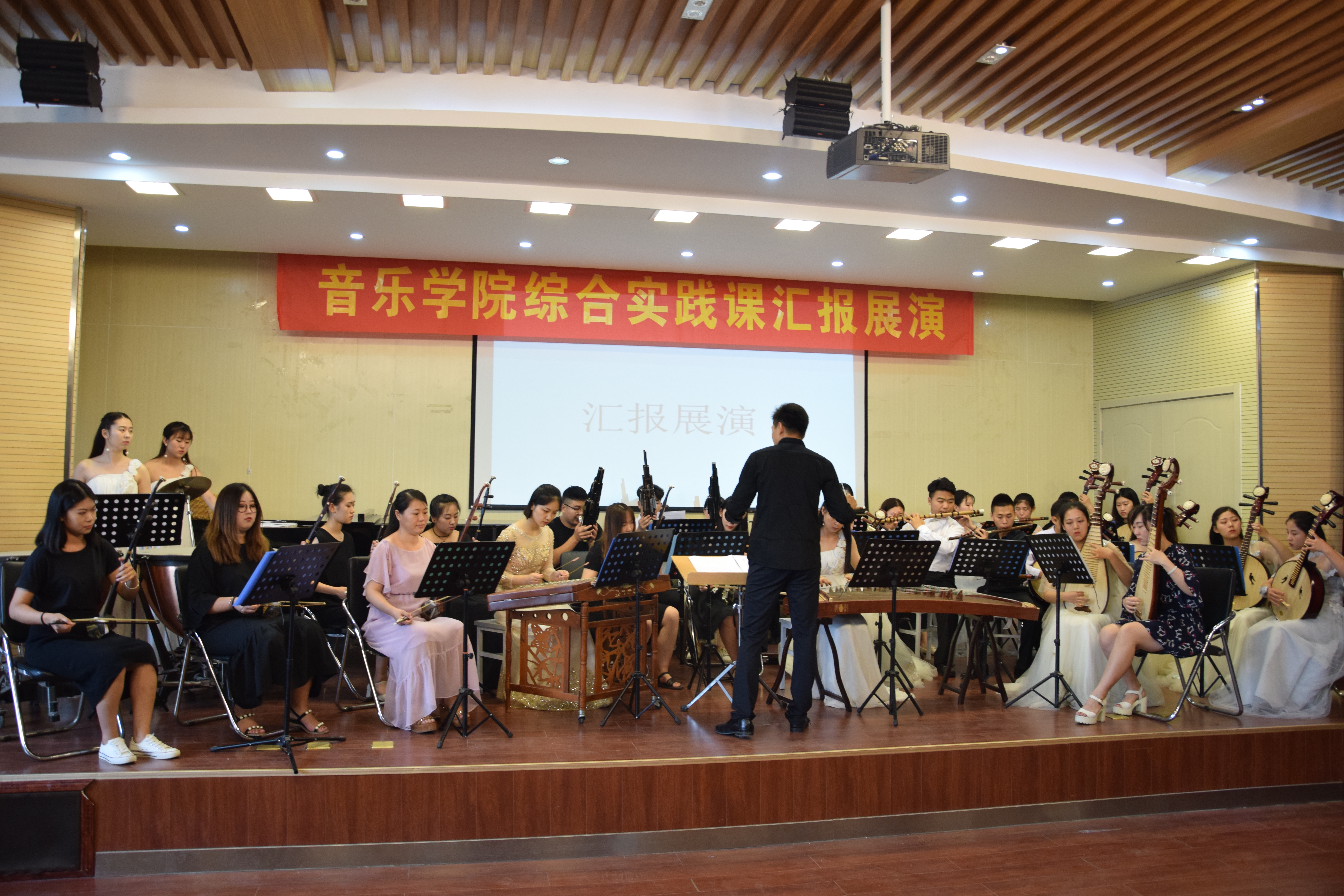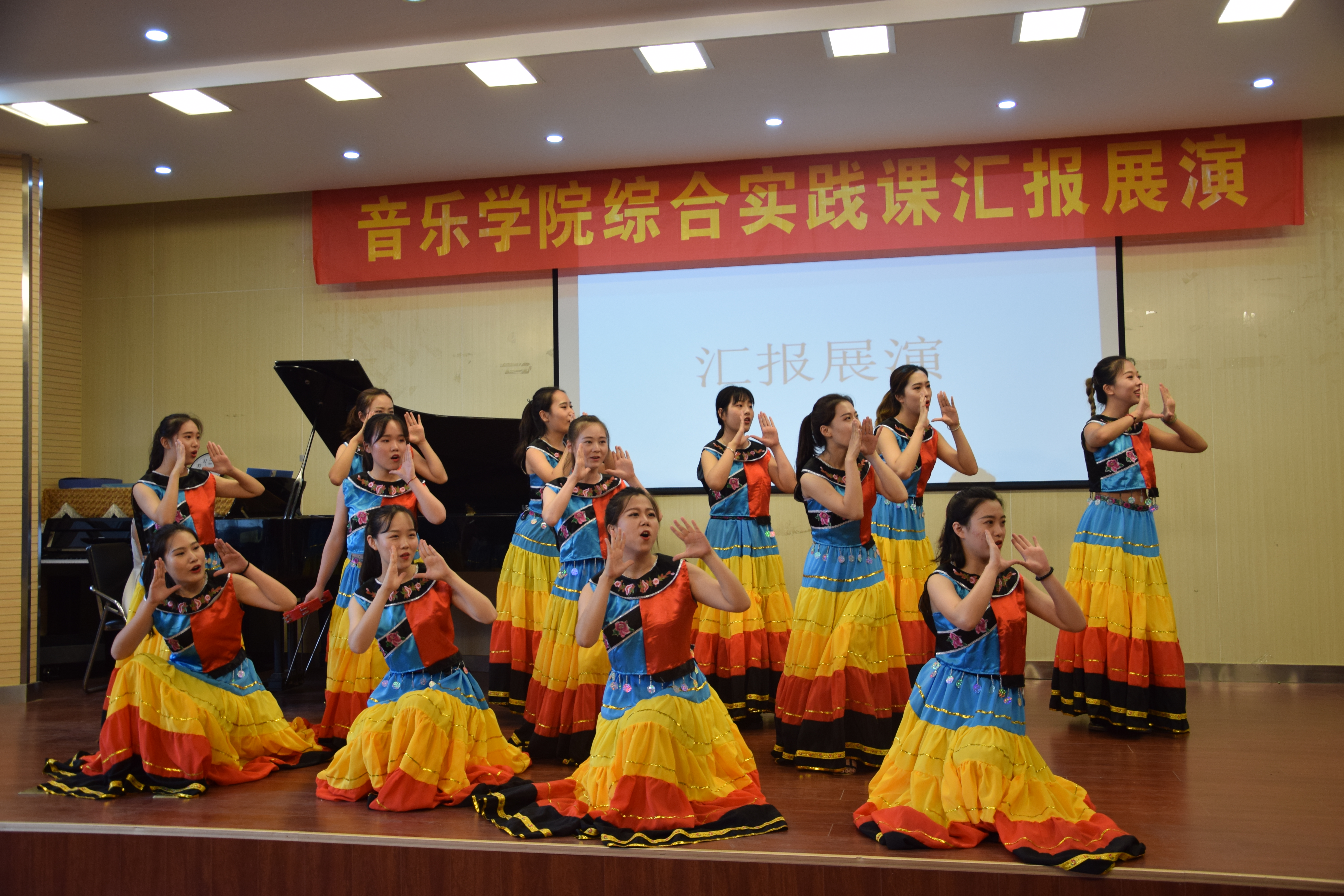 按照教务处的统一安排,根据我院的专业特点,我院开设了《民乐合奏与排练》、《古筝重奏与排练》、《弹拨乐重奏与排练》、《室内乐重奏与排练》、《声乐舞台表演唱》、《声乐剧目排练》、《钢琴伴奏与艺术指导》、《音乐课堂授课技巧与实践》、《合唱指挥与排练》等12门综合实践课程,课程主要以声乐、钢琴、器乐、舞蹈和理论五个方向进行了实践,课程的选择打破了年级和专业的限制,每位同学根据自己的意愿选择课程,将所学的理论知识应用于实践中,从而提高学生的实践能力。