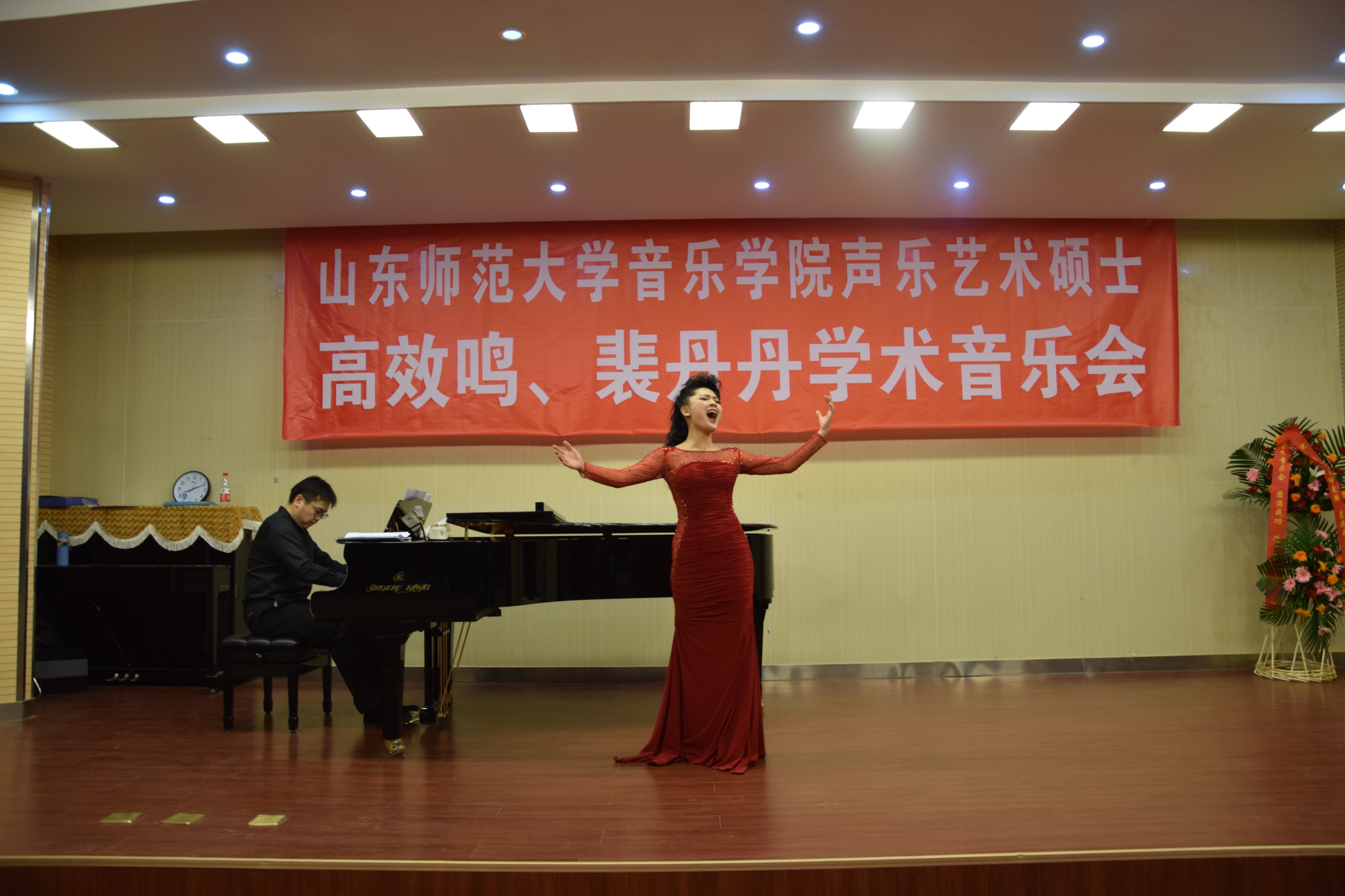 此次学术音乐会是由山东师范大学音乐学院2015级硕士研究生高效鸣和裴丹丹共同完成的,两位同学均是李海鸥院长的硕士研究生。本场音乐会主要以“讲”“演”结合的方式,在每一首曲目表演前都会介绍该首歌曲蕴含的故事,并从歌曲的历史、特征和文化内涵等方面进行详细解读,为观众普及了音乐常识,使到场观众在享受视听盛宴的同时近距离感受了美声和民歌的魅力。高效鸣和裴丹丹先后为我院师生带来了中国艺术歌曲《钗头凤》、《春归何处》、《我住长江头》和外国歌剧咏叹调《安宁,安宁》、《你可知道,好妈妈》、《埃尔纳尼,咱们逃走吧》等美声作品,还带来了山东苍山民歌《绣荷包》、云南民歌《绣荷包》、贵州民歌《摘菜调》、湖南民歌《洗菜心》、东北民歌《看秧歌》、河南坠子《摘棉花》和根据沪剧改编的《燕燕做媒》等民歌作品,在现场观众的喝彩声中,音乐会圆满落幕。
