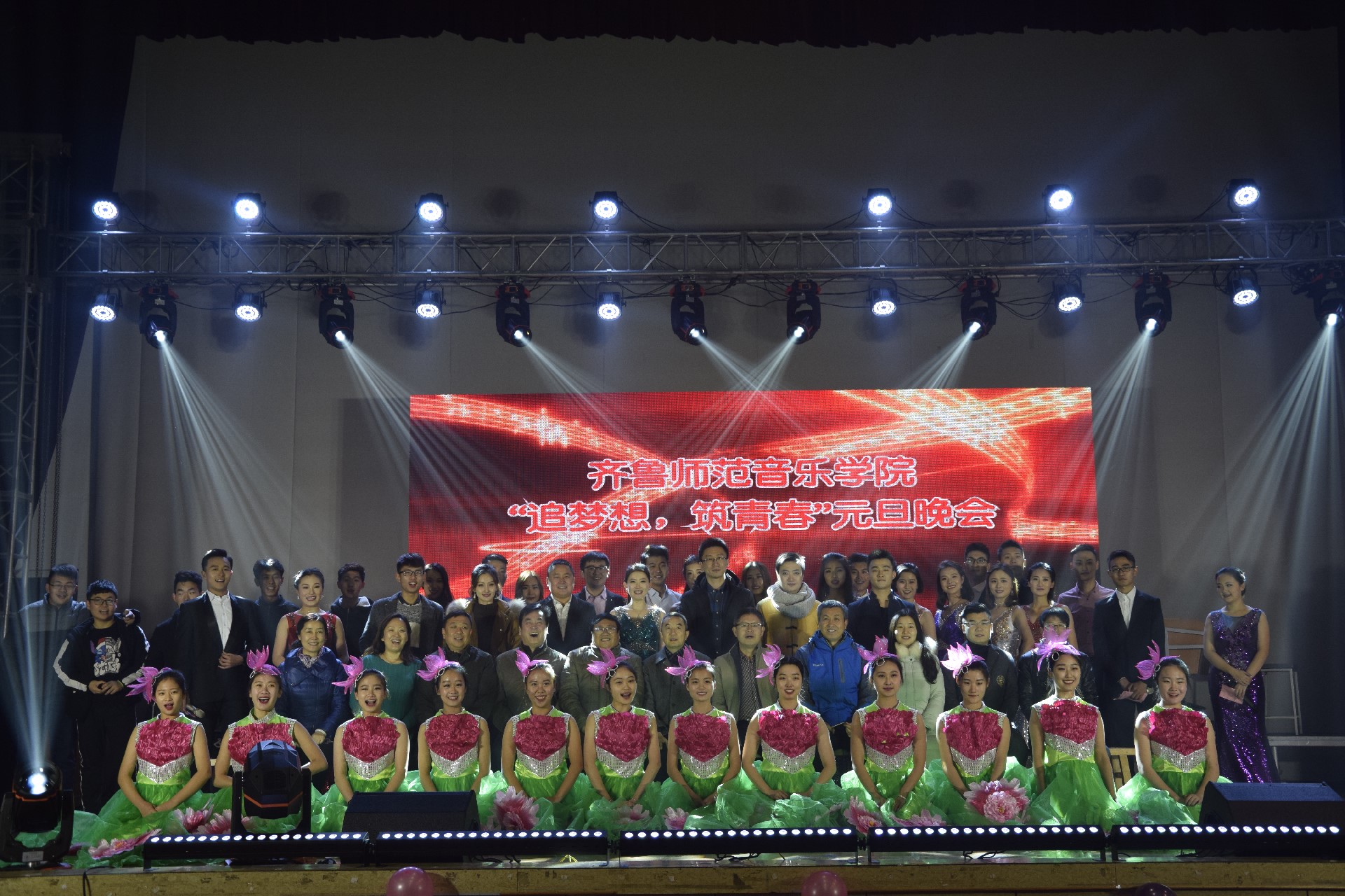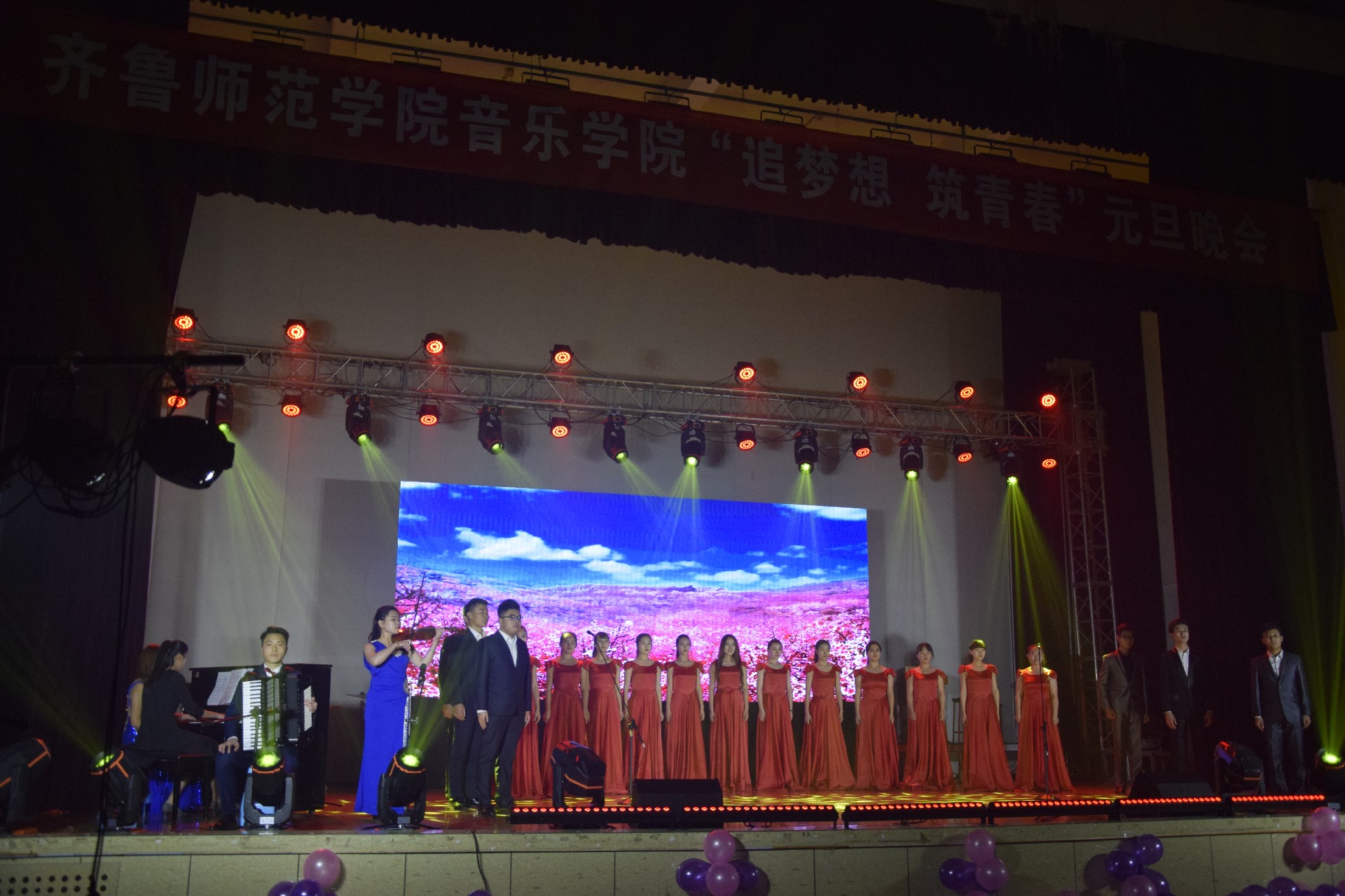 12月20日晚,由我院举办的“追梦想筑青春”元旦晚会在我校体育馆圆满落幕。激情的演唱、火热的舞蹈、风趣的小品、精彩的音乐剧各类节目轮番上映,让人眼花缭乱。现场气氛热烈,笑声不断。齐鲁师范学院纪委副书记孙嵩峰、科研处长林成策、基建处刘增军处长、教师教育学院党总支书记陈宝金、物理与电子工程学院党总支书记庞守荣、音乐学院党总支书记万梅红、音乐学院副院长常爱玲出席观看了晚会。