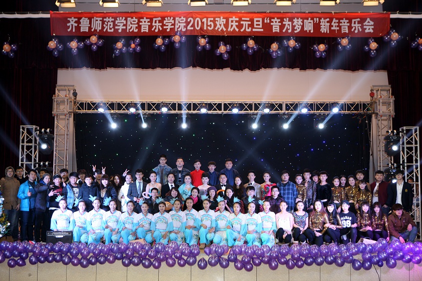 晚7时整,体育馆华灯高照、金碧辉煌,2015欢庆元旦新年音乐会隆重上演。整场音乐会共分为《放歌青春梦》《共叙师生情》《艺动90风》3个篇章。伴着情景交融的民乐合奏《花好月圆》拉开了新年音乐会的序幕。一首《我相信》道出学生对于梦想的坚信与执着;一段傣族舞《邵多丽》演绎的如此动人,用身体舞出青春的旋律;流行歌曲串烧感染全场,道出师生情谊;乐团演唱嗨翻全场…在音乐学院教师丁珺、刘爽、孙彦峰、徐定兴共同演唱《和谐圆舞曲》的歌声中,晚会落下帷幕。