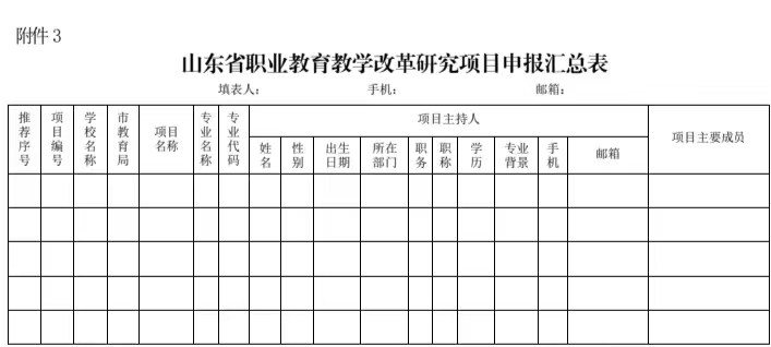 1.2023 年度山东省职业教育教学改革研究项目立项指南 2.山东省职业教育教学改革研究项目申报书 3.山东省职业教育教学改革研究项目申报汇总表