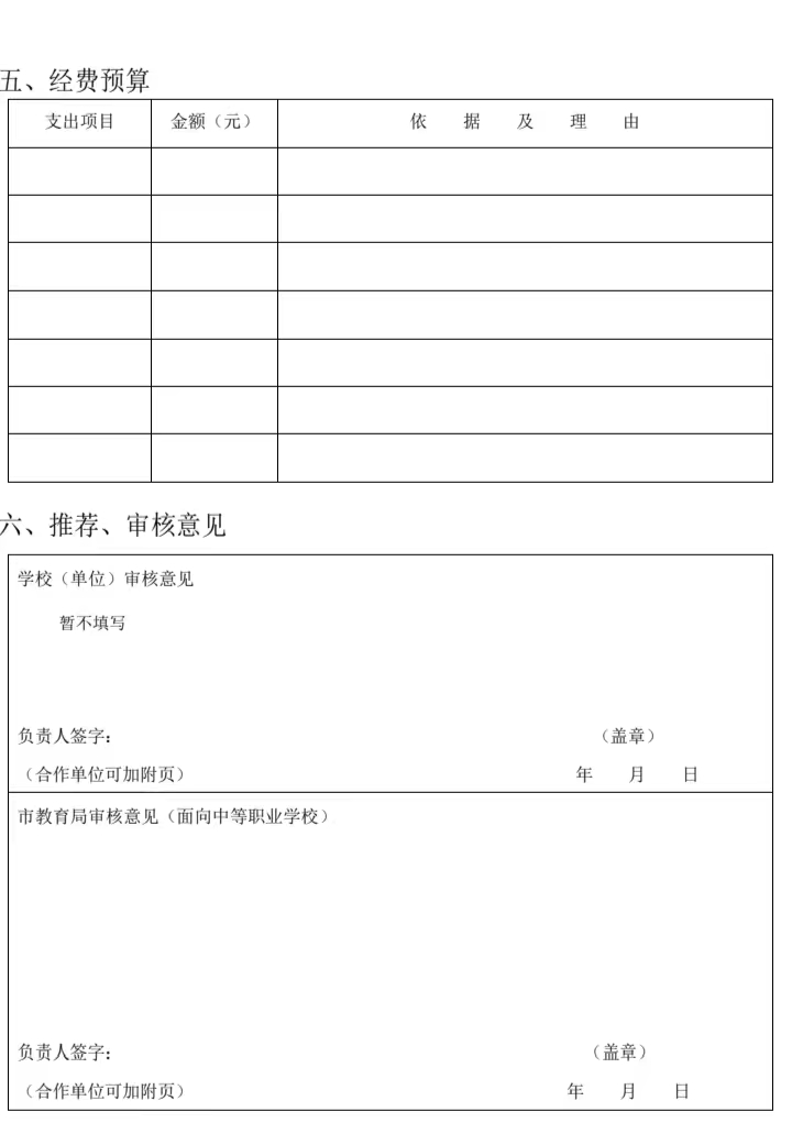 4.本表须经项目负责人所在学校审核, 签署明确意见,并加 盖公章后方可上报。合作单位需附同意推荐意见。