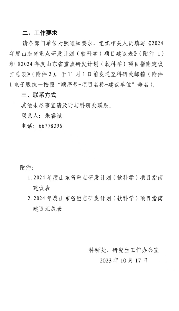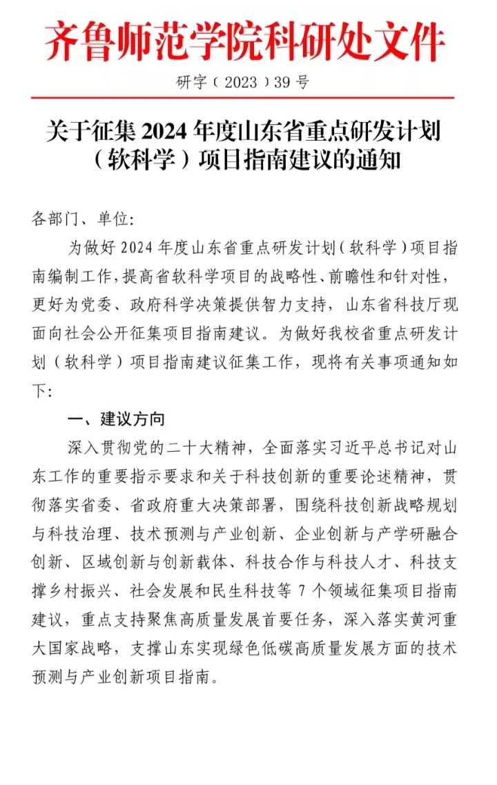 关于征集2024年度山东省重点研发计划(软科学)项目指南建议的通知