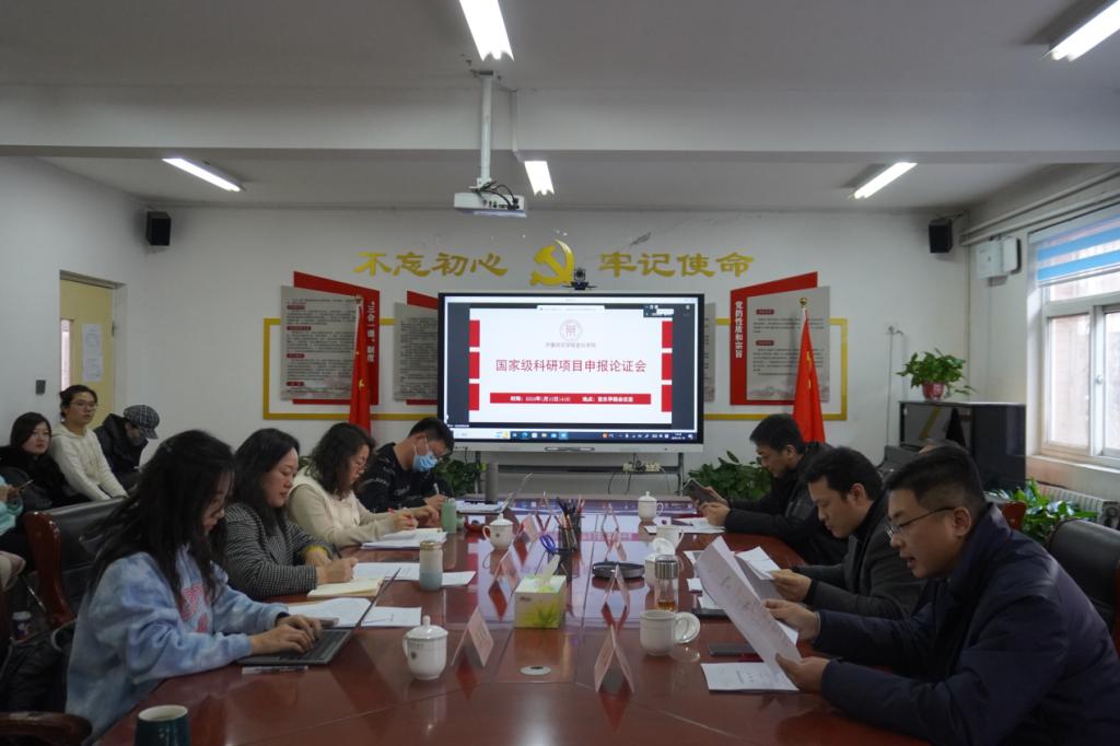 为确保2024 年国家级科研项目申报工作有序进行,进一步提升学校高层次科研项目立项数量和质量,2024年1月10日下午2点,音乐学院组织召开国家级科研项目申报论证会。会议特别邀请了山东大学文艺美学研究中心主任谭好哲教授;山东省教育科学研究院副院长薄存旭教授;临沂大学音乐学院院长王秀庭教授;齐鲁工业大学体育与音乐学院副院长严可教授;以及齐鲁师范学院文学与历史文化学院副院朱振华教授担任本次论证会专家,音乐学院院长万梅红主持会议,学院专任教师20余人参加本次论证会。