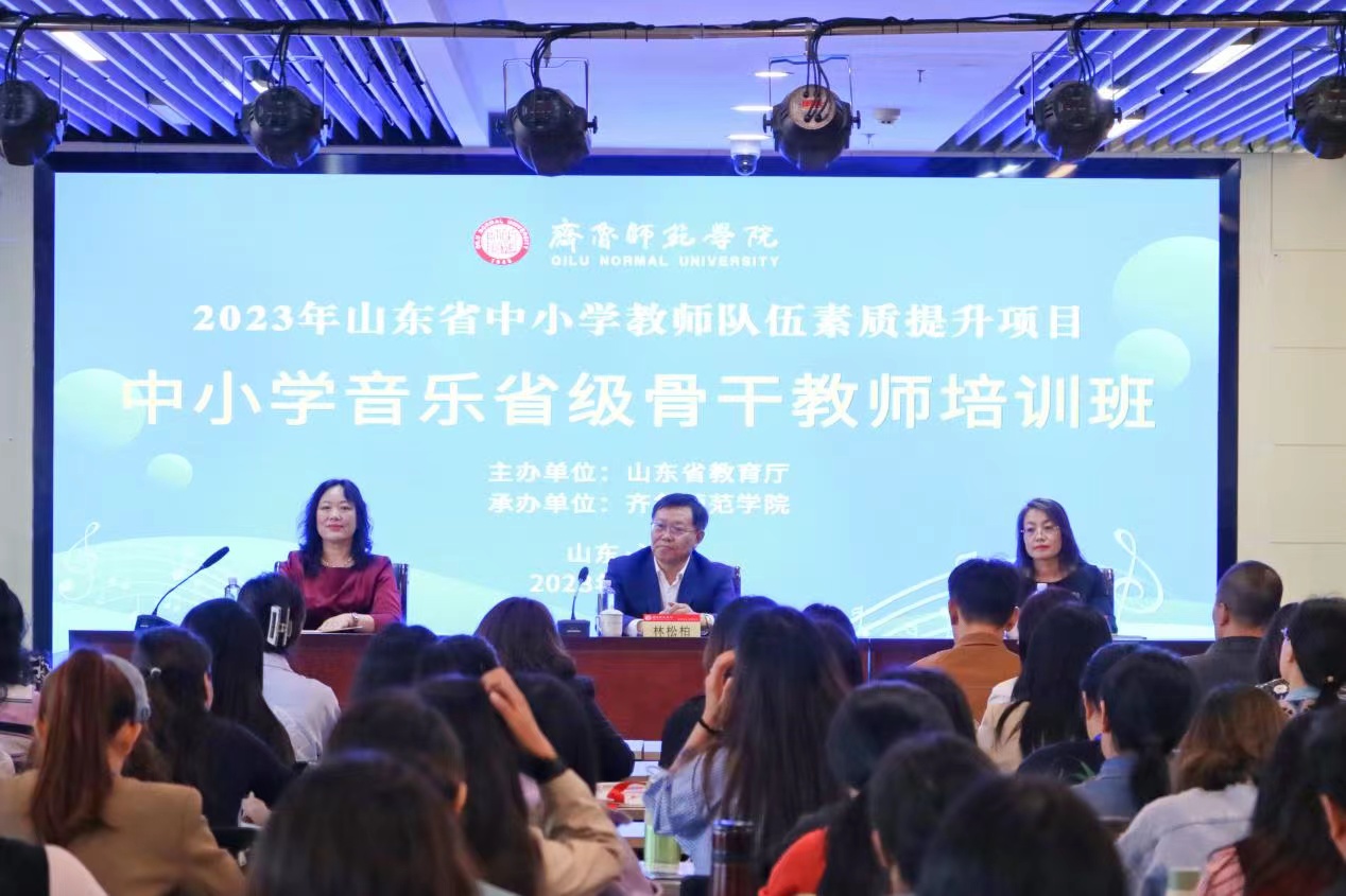 10月9日,山东省中小学音乐骨干教师培训班开班典礼在济南举行。齐鲁师范学院党委书记林松柏教授、音乐学院院长万梅红教授、培训工作组成员以及培训班全体学员出席开班仪式。仪式由音乐学院副院长桑潇教授主持。