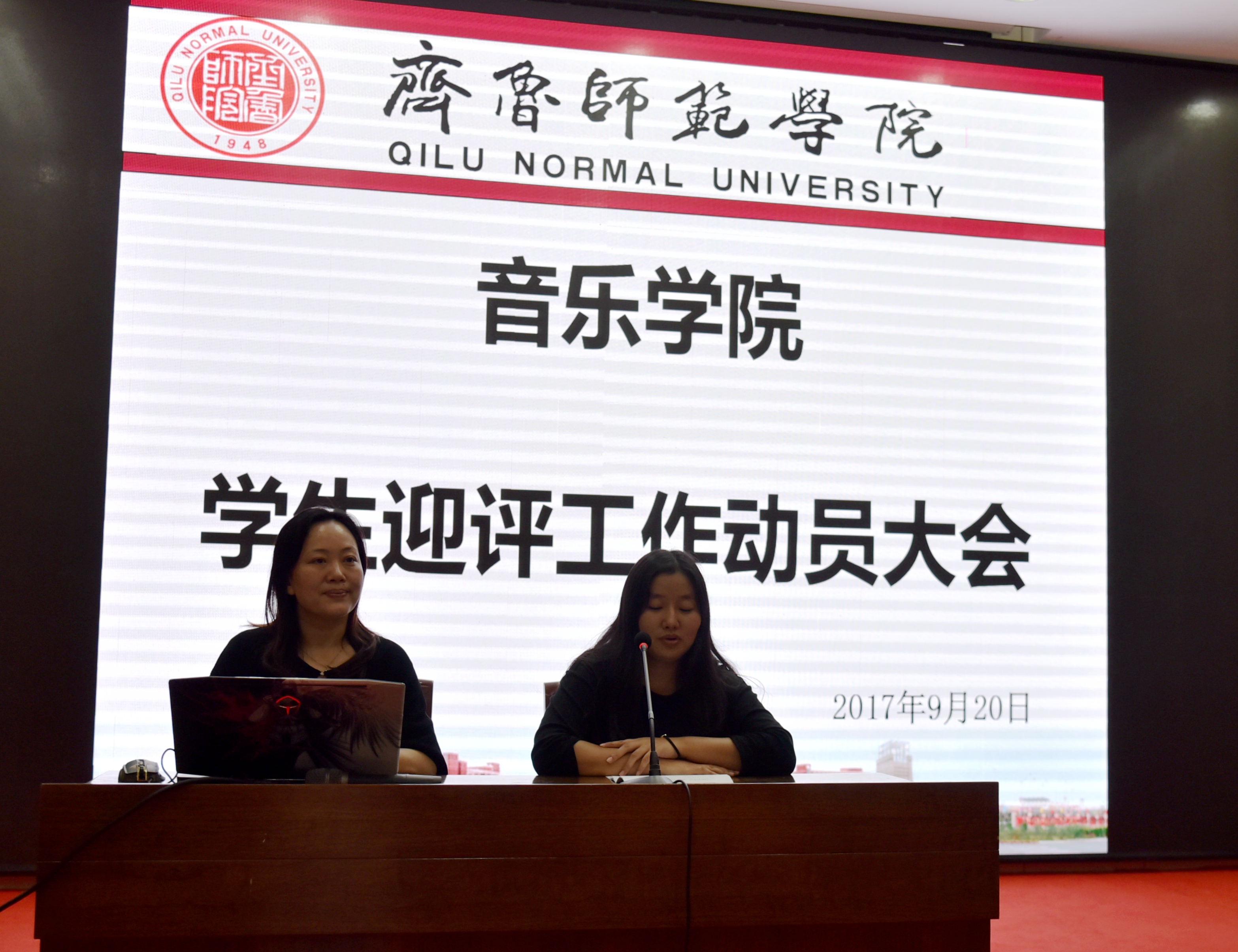 在迎评工作的最后冲刺阶段,为使学生进一步了解本科教学评估工作,熟悉迎评知识,促进我校本科教学合格评估顺利完成,音乐学院于9月20日晚上6:30在图书馆报告厅召开学生迎评工作动员大会,音乐学院党总支书记万梅红,团总支副书记赵宝丽、辅导员老师及学生代表参加了动员大会。会议由团总支副书记赵宝丽主持。