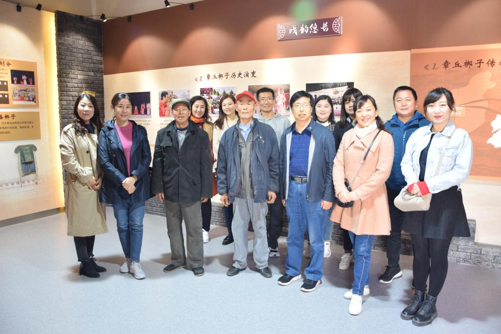 音乐学院一行参观了石匣村及章丘梆子戏曲博物馆。章丘梆子,为非物质文化遗产之一,源秦腔,起山陕,沿商道,经黄河,传齐鲁,融章柳,于齐鲁大地且歌且行,直至今天,实为民间戏曲奇葩。章丘梆子传承人、剧团团长于亮兴首先介绍了石匣村在章丘梆子传承、保护和章丘梆子戏曲博物馆建设等方面的现状,但是由于缺乏科学的记谱方法,仅靠老艺人口传手授,而老艺人们的相继谢世,使不少传统曲目遗忘失传,希望学院在章丘梆子传承和保护、群众文艺活动开展等方面进行深度合作。