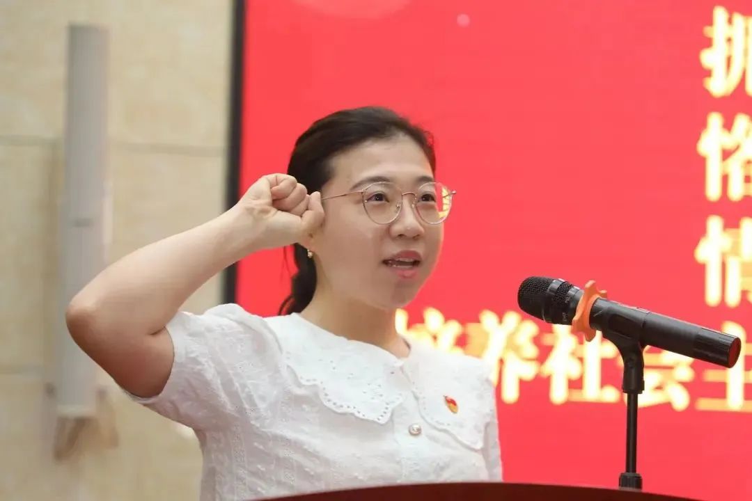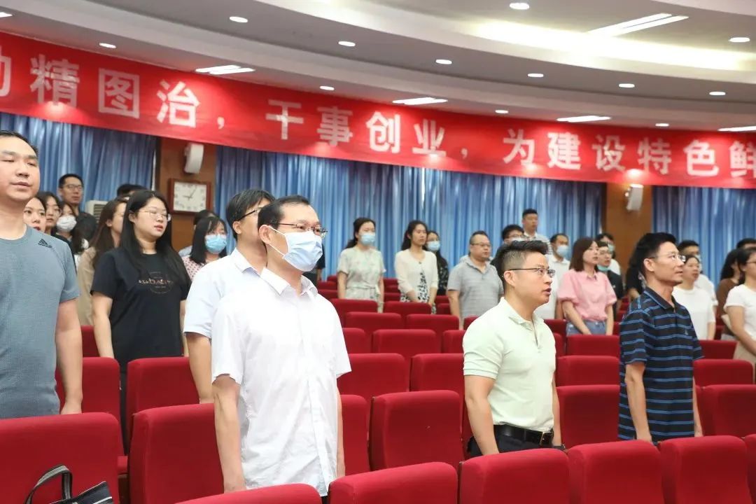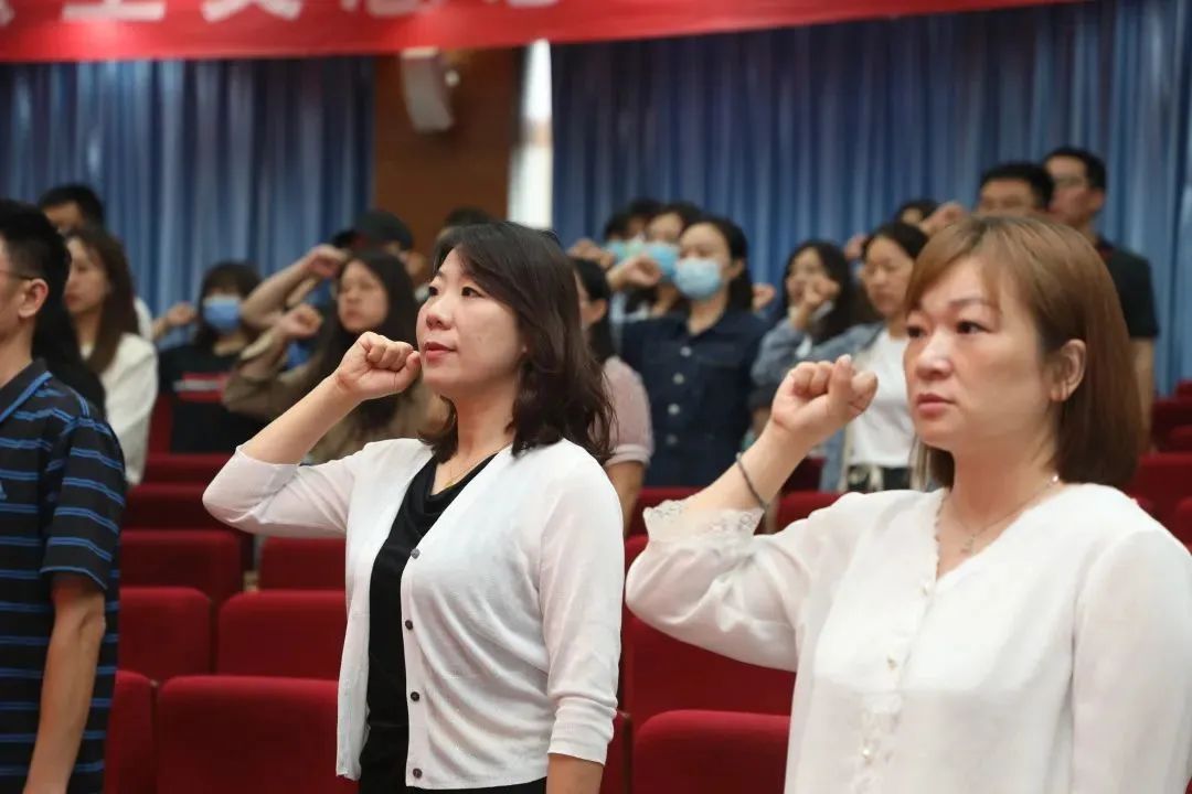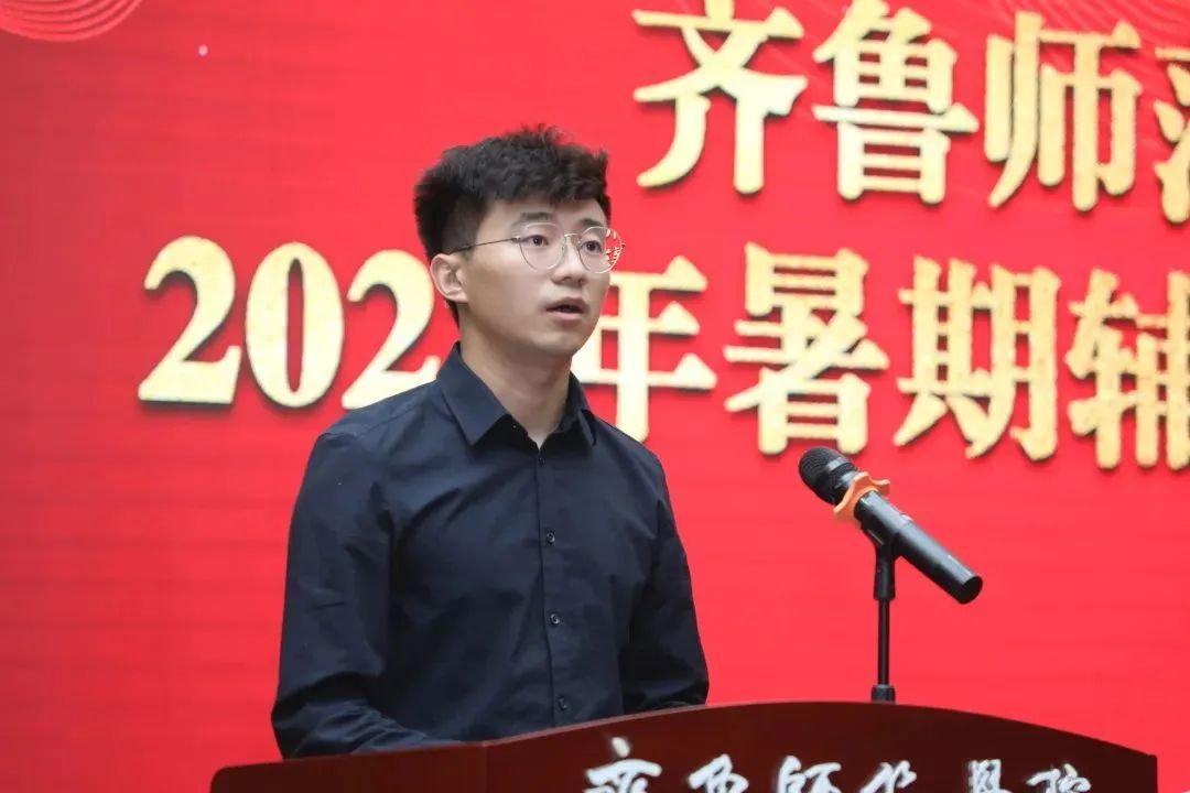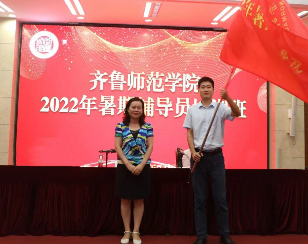 学生工作部部长孙磊对做好2022年暑期辅导员集中培训工作进行了介绍和安排部署。外国语学院团总支副书记王伟作为学员代表发言,分享了自己对新时代高校辅导员的育人初心和使命认识。化学与化工学院团总支书记杨睿带领全体辅导员重温《辅导员誓词》。仪式最后,赵敏向2022年暑期辅导员培训班授班旗。