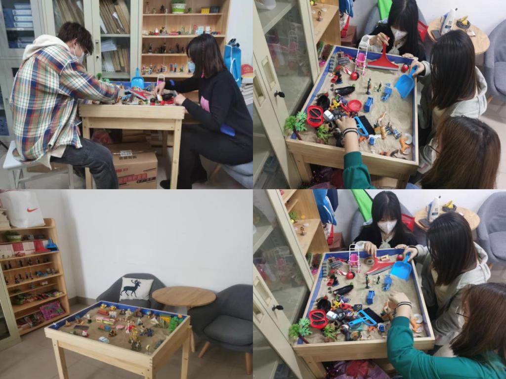 为进一步了解学生心理,更好地促进学生健康成长。音乐学院组织了心理沙盘游戏活动,活动于4月14日14:00在音乐学院心理沙盘活动室开展。本次活动以“心之所想,沙之所筑”为主题,在沙盘游戏的过程中,来访的学生通过引导,从自己所摆出的沙游作品中体会自身当下的情绪。