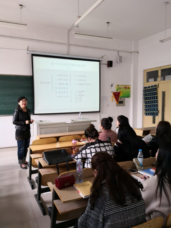 课程负责人张英梅教授多年从事中小学音乐课程与教学论的教学与研究,为学科建设提供了诸多宝贵的经验与资源,本次将省内教学名师引进课堂的活动,更为音乐学院的实践教学注入了新鲜的血液。讲座主要围绕小学音乐课堂教学设计与实施、应聘小学音乐教师的相关技巧以及小学音乐教材歌曲的伴奏与编配三个方面内容进行展开,让同学们深刻感受我省一线教学实际情况。