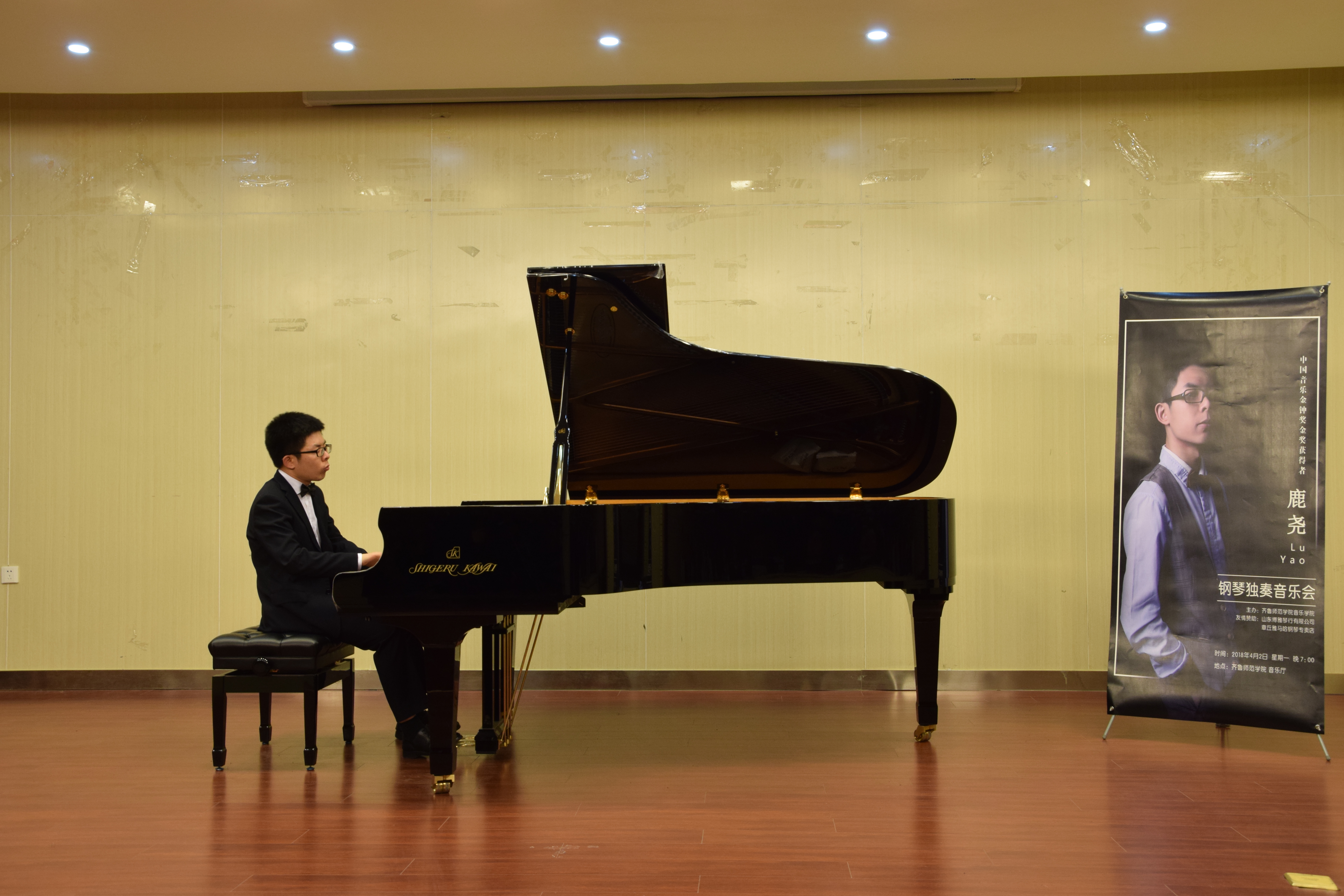 4月2日晚,中央音乐学院钢琴系硕士研究生、中国音乐金钟奖金奖获得者鹿尧钢琴独奏音乐会在音乐学院音乐厅举行。本场音乐会作为音乐学院键盘教研室本学期重要的教研活动之一,得到了音乐学院领导和老师们以及山东钢琴界同仁的大力支持。音乐院长万梅红、副院长常爱玲、山东省钢琴学会副会长、山东艺术学院曹克恩以及音乐学院键盘教研室的老师们出席了音乐会。