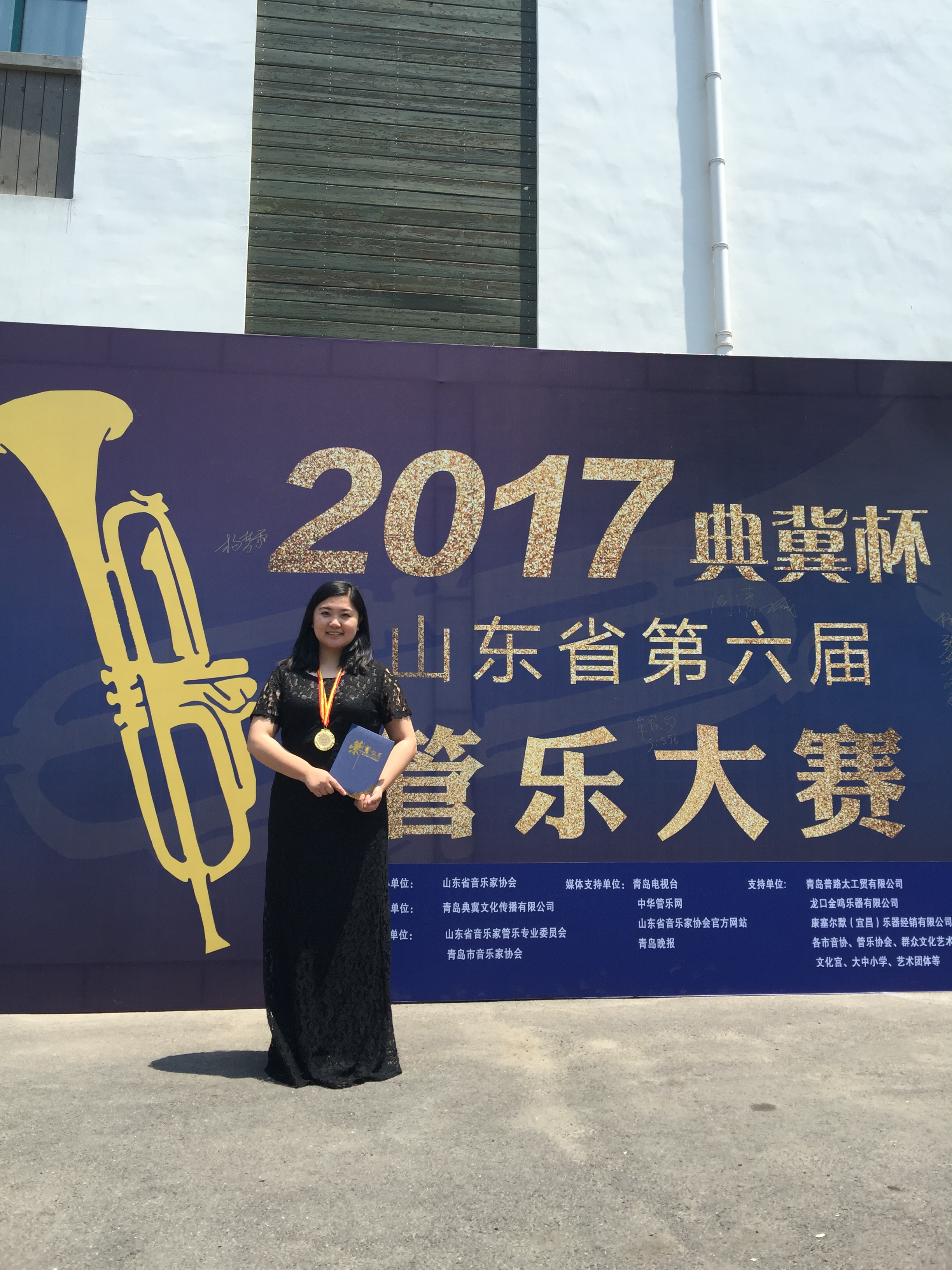 2017年5月28日—5月30日“典冀”杯山东省第六届管乐大赛在青岛举行。音乐学院青年长笛教师王昱在此次大赛中荣获职业组金奖。