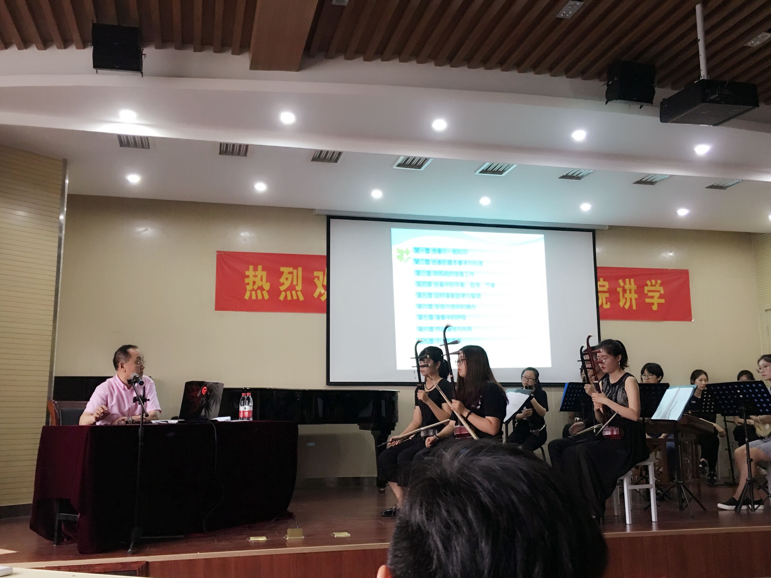 6月22日下午3点,《乐队合奏基础知识》讲座在音乐学院排练厅如期举行,吸引了众多师生前来观摩学习。徐指挥为音乐学院器乐专业的学生进行了精彩细致的讲授。音乐学院分别选派了民族丝竹乐合奏、小提琴重奏这两类具有代表性的器乐组合形式以配合讲座演示。徐指挥在合奏基本要求与标准、合奏中的音准节奏平衡、发音与音响的融合、作品演绎与风格、个人的素养等方面进行了专业的讲解,并结合我院器乐专业的具体编制进行分析,对我院学生提出具有针对性的建议和殷切鼓励,体现出一位资深指挥家丰厚的艺术素养和执着的敬业精神。现场互动气氛热烈,师生均表示受益匪浅,此次讲座也为今后我校器乐专业乐队合奏重奏的深入发展打下了良好的基础。