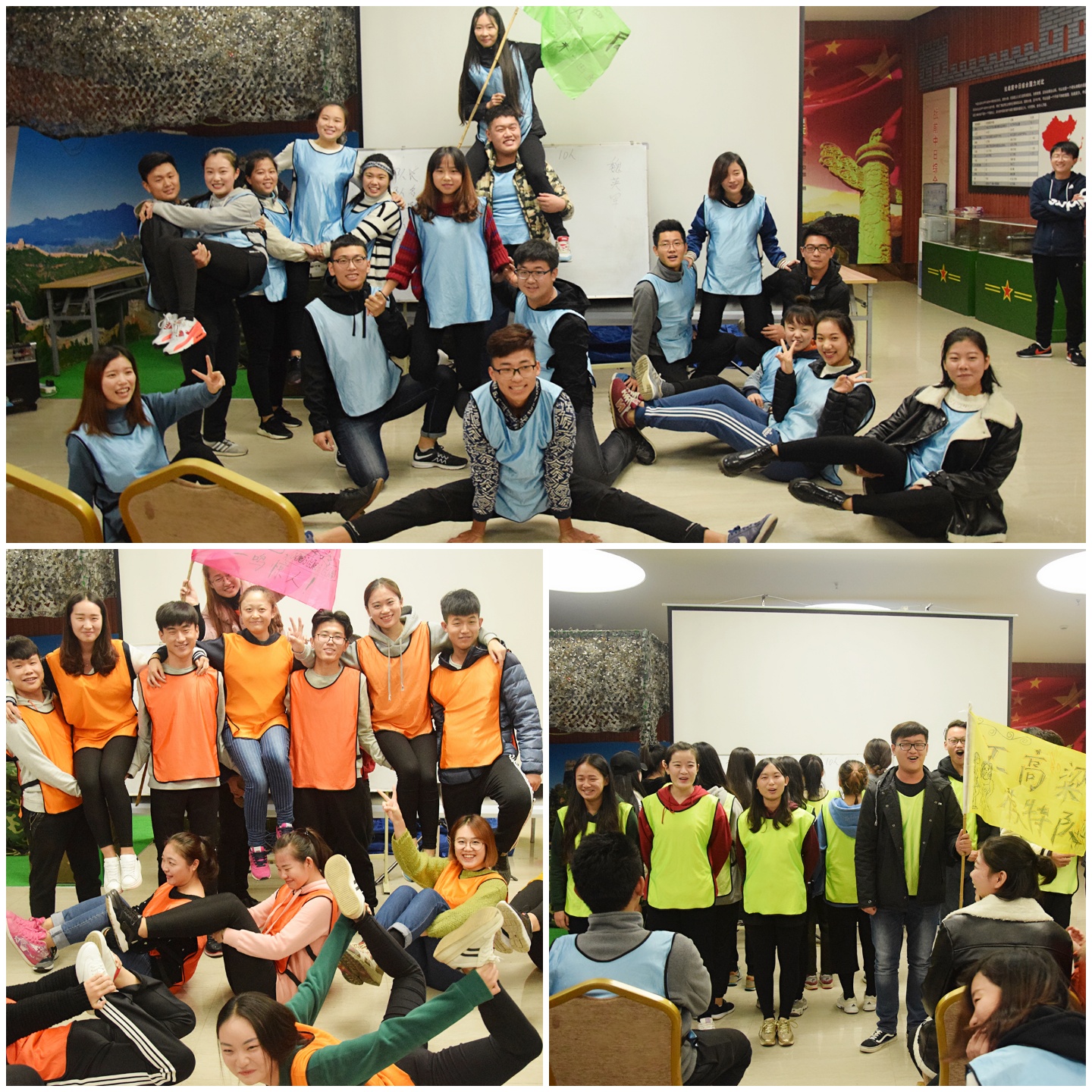 在一天的拓展训练中,成员们被分成了三个组,每个组经过讨论设定出属于自己队伍的旗帜、口号、队形和队歌。此次活动分为“破冰”、“高空项目”、“有轨电车”、“穿越电网”四个游戏,锻炼大家的配合度以及团结度,在四个游戏中,三支队伍均团结一致,展现了极强的默契,三支队伍势均力敌,不分伯仲。