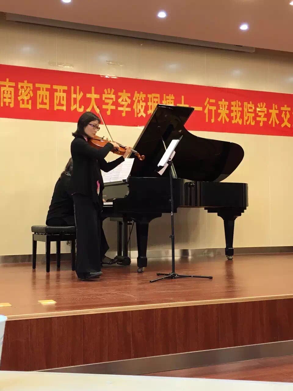 12月17日,美国南密西西比大学李筱珮博士(中提琴)、Elizabeth Moak博士(钢琴)、Stacy Reischman Fletcher院长(舞蹈)一行莅临我校,举行中提琴钢琴音乐会,并为小提琴、钢琴、舞蹈专业开设了大师班。