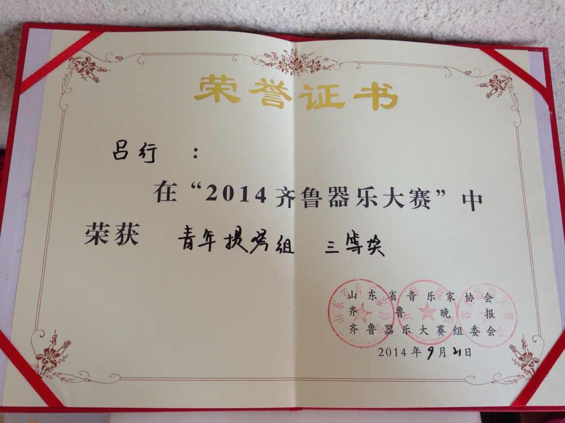 我院学生吕行在“2014齐鲁器乐大赛”中荣获青年提琴组三等奖。指导教师张慧敏