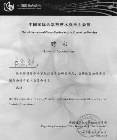 我院房思钊教授被聘请为文化部中国国际合唱艺术节艺术委员会委员