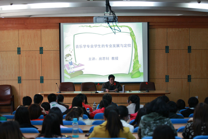 2013年4月12日我院房思钊教授在齐鲁师范学院音乐厅举行了音乐学专业学生的专业发展与定位的专题讲座。