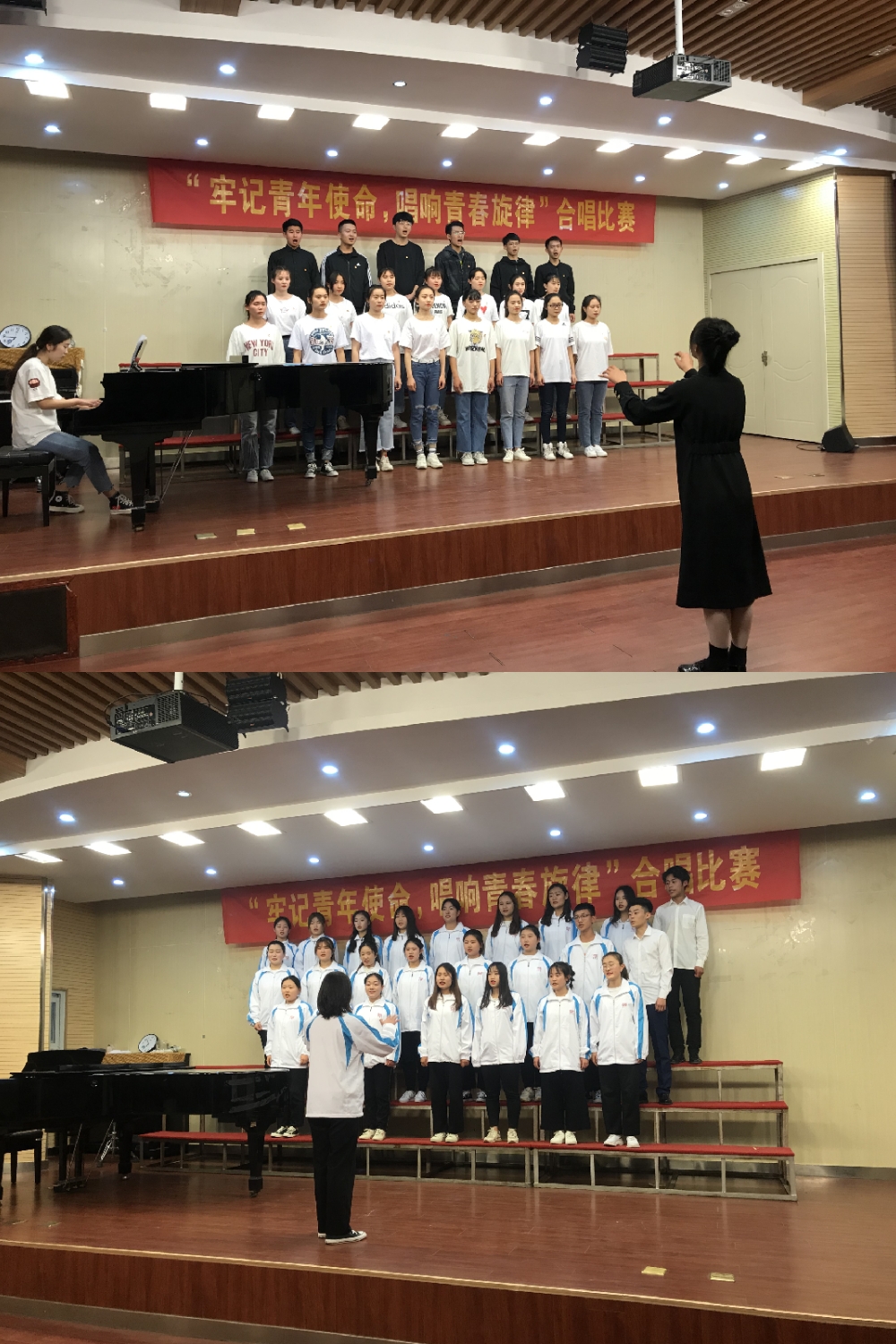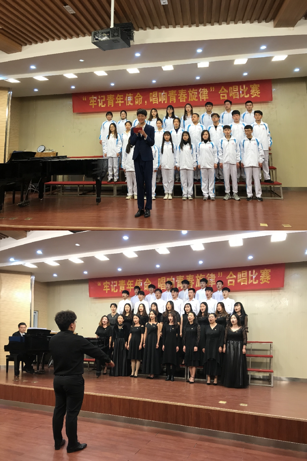 合唱比赛由一首《国家》拉开帷幕,嘹亮的歌声唤起了慷慨报国的凌云壮志,气势磅礴的合唱博得了现场阵阵热烈的掌声。一首《歌唱祖国》激昂的旋律萦绕校园,青春之我、奋斗之我,表达了青年对国家的热爱、对祖国发展未来的美好憧憬。青春需要珍惜,因为时光不会倒流;青春就要奋斗,因为我们还年轻;青春就要奉献,因为我们是光荣的共青团团员《光荣啊,中国共青团》唱出了青春,唱出了动力。《天耀中华》《我和我的祖国》《我爱你中国》更是满载了中华民族的责任和华夏儿女的血脉情怀。经历了多少血雨风霜,才迎来今天的繁荣富强,经过了多少艰苦磨难,才让我们的祖国茁壮成长。