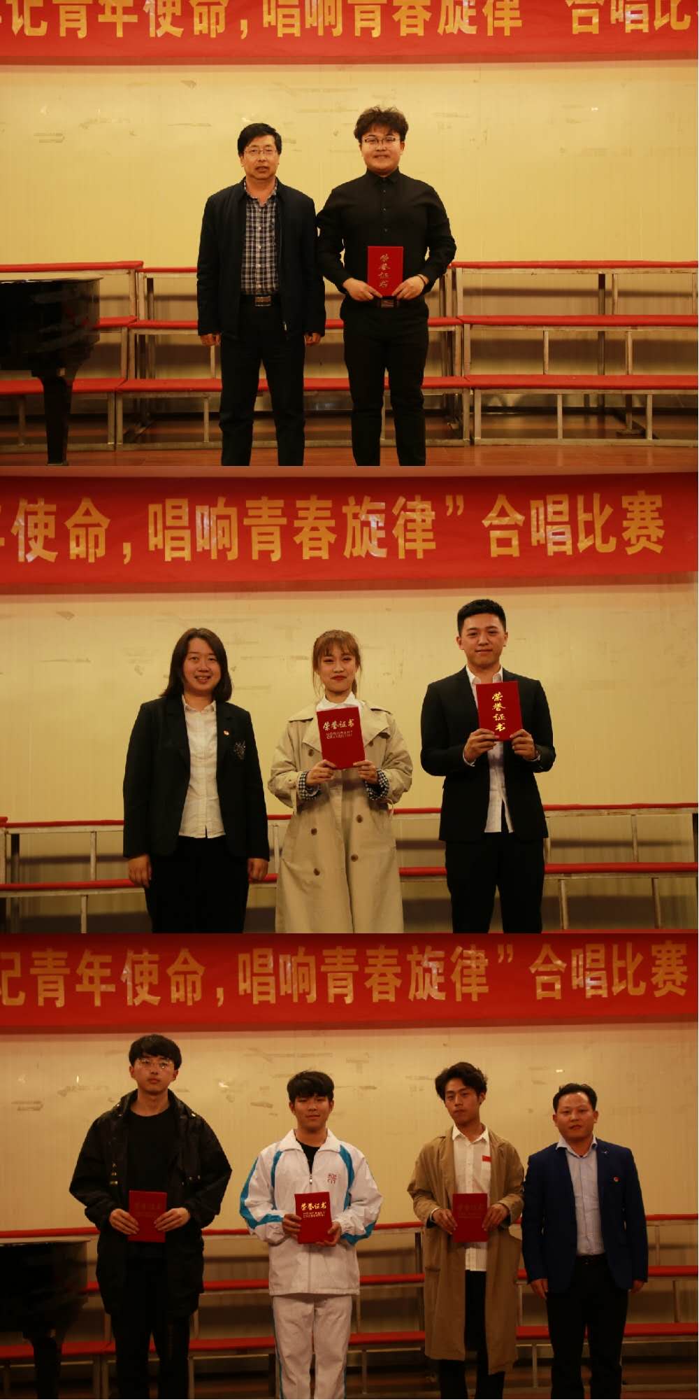 为庆祝五四100周年,弘扬爱国精神,重温红色经典,并立于增强班级凝聚力,丰富校园文化生活。音乐学院于4月25日晚在音乐厅隆重举行了庆祝五四100周年“牢记青年使命,唱响青春旋律”合唱比赛。音乐学院党总支书记王德民,校团委正科级干事李海涌,教师教育学院团总支书记孙建凯等领导老师出席了此次活动,5位专业老师应邀担当了本次活动的评委。