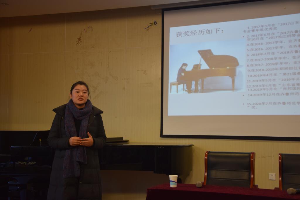 最后,我院2020届毕业生、2020年度齐鲁师范学院“学风先进个人”获得者、山东艺术学院研究生刘坤向同学们分享了考研经历和复习策略。她结合自身经历从院校、专业选择到制定学习计划和保持良好心态等方面为大家作了经验分享。并围绕考研英语、政治考试分别讲述技巧及方法,提醒同学们对专业课程采取灵活弹性的方式学习,鼓励大家艰苦奋斗、永不放弃。
