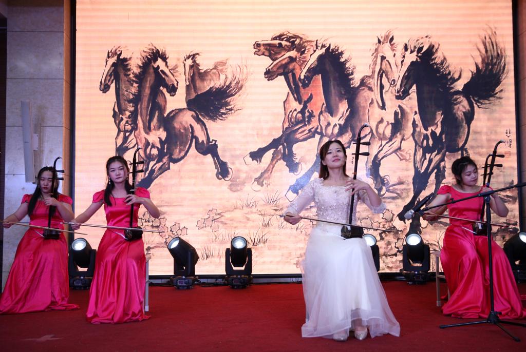 本场晚会共设置10各节目,包括歌曲、舞蹈、相声等多种类型。开场舞《我们都是追梦人》拉开了整场晚会的帷幕,整个作品流行与古典兼收、奔放与内敛共存,形式新颖,精彩绝伦,充分展示了当代青年的精神风貌。朱琳老师带领同学们演奏的二胡齐奏《赛马》以其磅礴的气势、奔放的旋律赢得在场观众掌声不断,由远到近清脆而富有弹性的跳弓,强弱分明的拨弦、颤音,仿佛在我们面前展现了一幅生动热烈的赛马场面。中场互动环节老师与同学们共同参与有趣的抽奖游戏,在欢声笑语中师生拉近了彼此之间的距离。《复古舞蹈串烧》仿佛带我们回到了上世纪九十年代的上海,相声《朋友论》诙谐幽默,妙语连珠,两位同学以他们幽默搞笑的方式展示了大学里浓浓的校友情,表达了对友谊地久天长的期许。愿你此去前程似锦,风景如画,袁野老师带来的歌曲《锦绣前程》激励人心,大气豪迈的展开了一幅美好未来的画卷,将晚会推向高潮。最后,伴随着曲调欢快热烈的《花好月圆》晚会完美落幕。