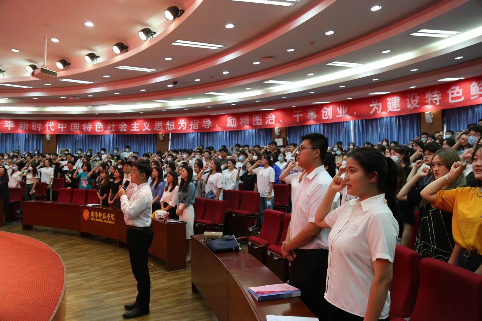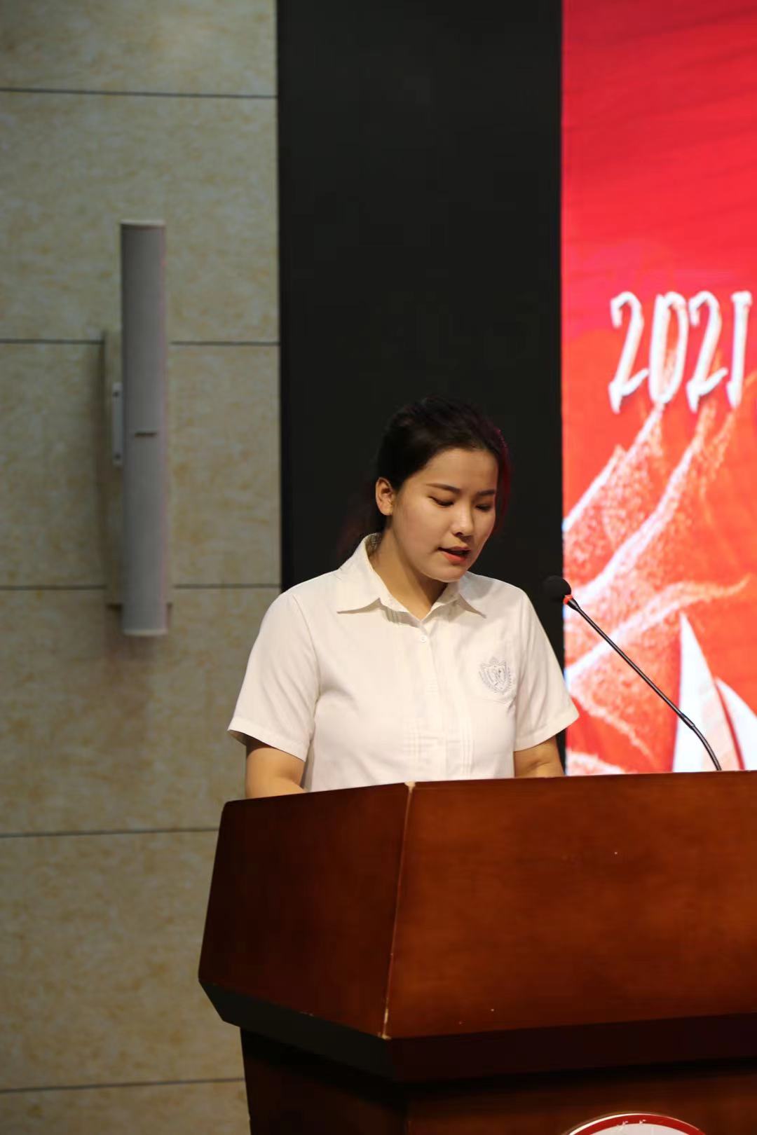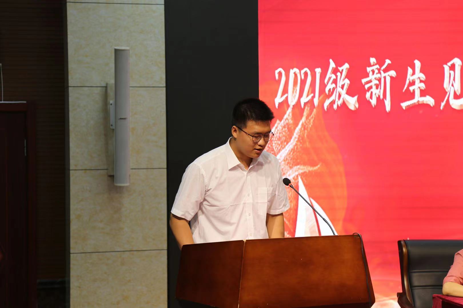 接着,我校2021年“最美教师”、新生班主任王笑容,学生会创业实践部部长李方淳,2021级音乐学2班班新生魏薪宇进行了代表发言。新生王曦带领2021级全体新生进行了庄严的入学宣誓。