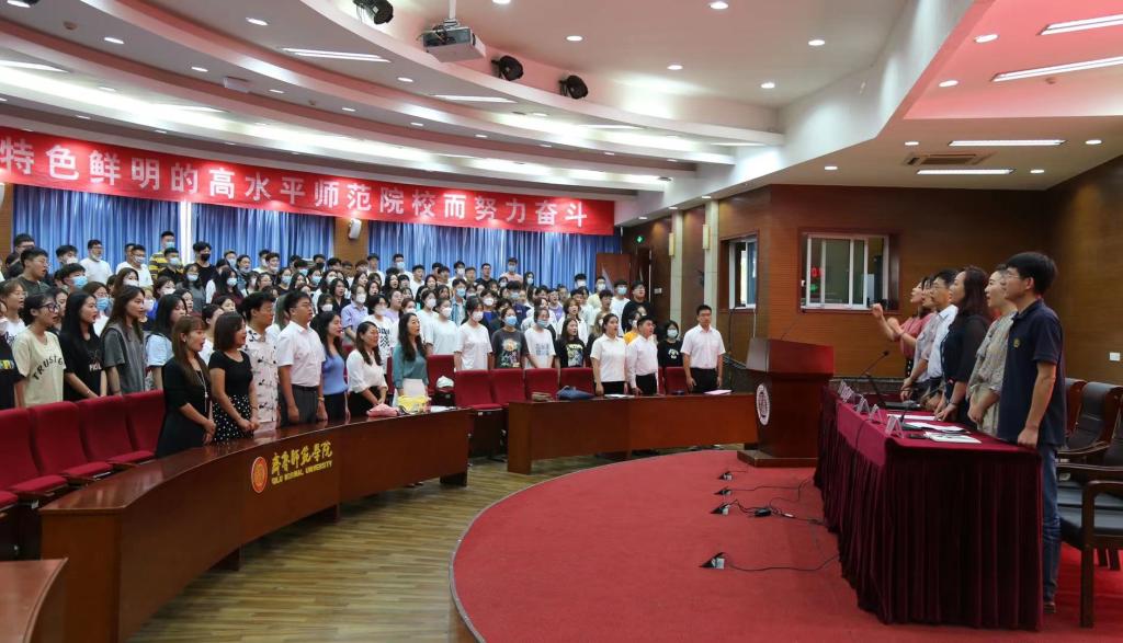 见面会在284名新生和老师们齐声高唱国歌中拉开帷幕。