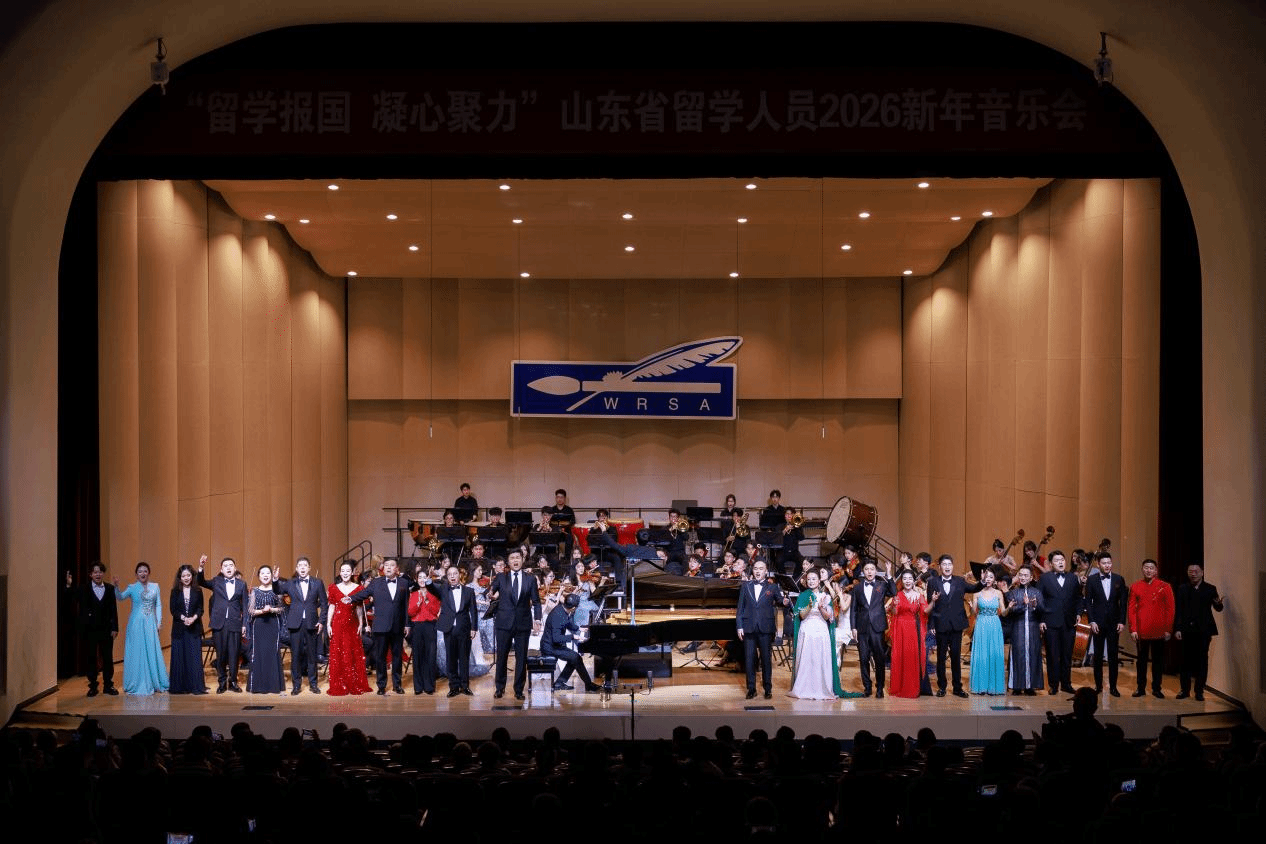 2025年12月27日晚,“留学报国 凝心聚力”山东省留学人员2026新年音乐会在济南剧院精彩上演。本次音乐会由山东省欧美同学会主办,汇聚了来自全省20余个欧美同学会组织、留学十余个国家的归国艺术人才。齐鲁师范学院音乐学院积极参与此次活动,为音乐会的高水准呈现贡献了重要力量。