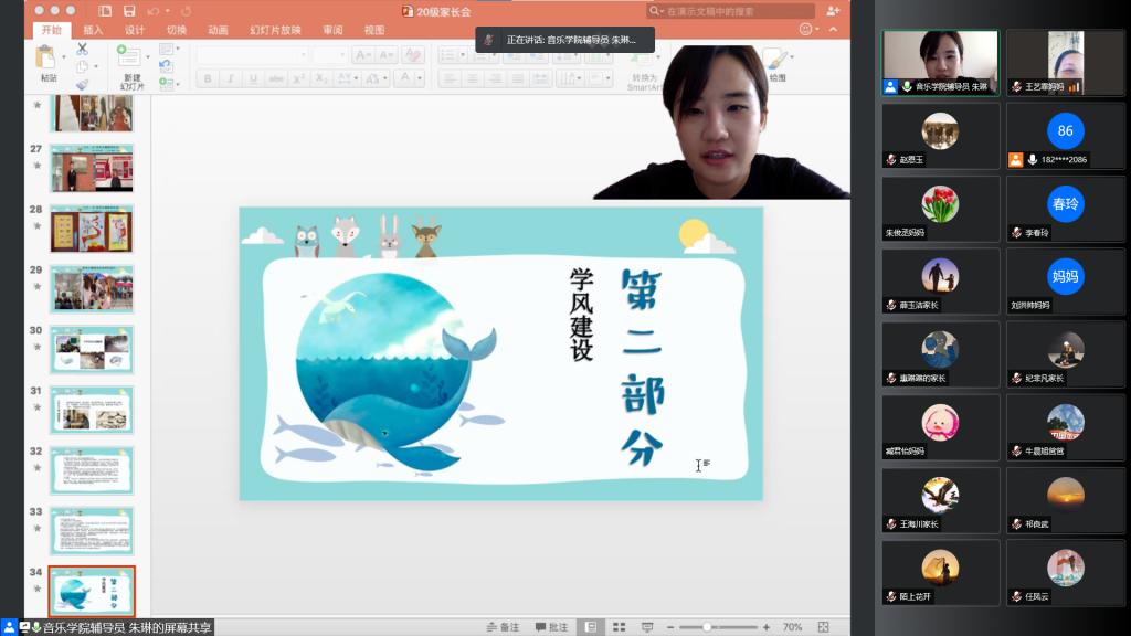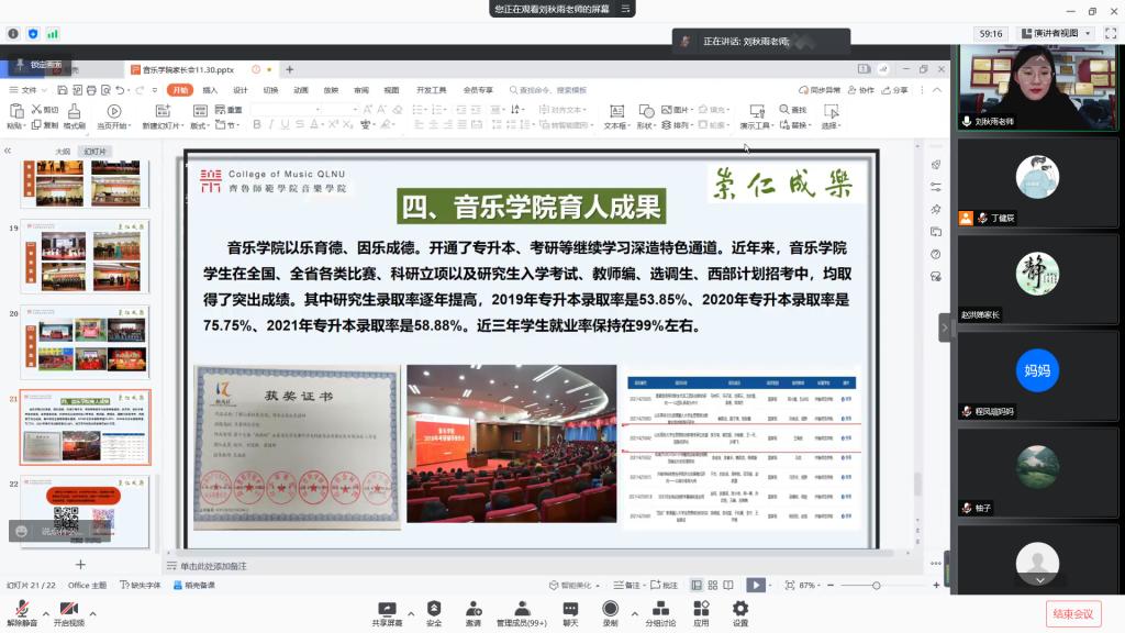 为积极探索家校共育途径、形成家校育人合力,进一步落实学校安全教育“六个一“活动,做到家校联动,共同关心培养学生成长成才,12月15至17日,音乐学院各年级辅导员采用腾讯会议的形式分别召开了线上学生家长会。