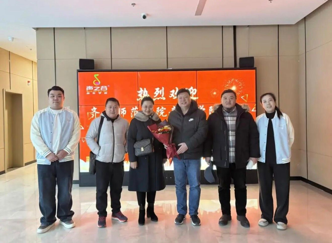 2026年1月8日,齐鲁师范学院音乐学院党委书记阴小建率队赴济南声之谷音乐教育培训学校开展“访企拓岗促就业”专项交流活动。声乐教研室主任李炜教授、副教授孙彦峰、教师张一萌一同参与。声之谷校长边慧、运营总监田斌热情接待并主持座谈。双方围绕实习就业基地建设、人才联合培养、课题研发等议题达成多项共识,计划于1月15日举办首场专场招聘会,为毕业生拓展优质就业渠道。