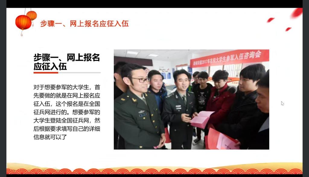 为助力我院征兵工作的开展,12月7日,音乐学院开展了2023年春季征兵入伍线上宣传动员活动。此次宣讲由音乐学院辅导员刘秋雨老师进行宣讲,音乐学院各年级有意向征兵入伍的同学共同聆听此次宣讲活动。