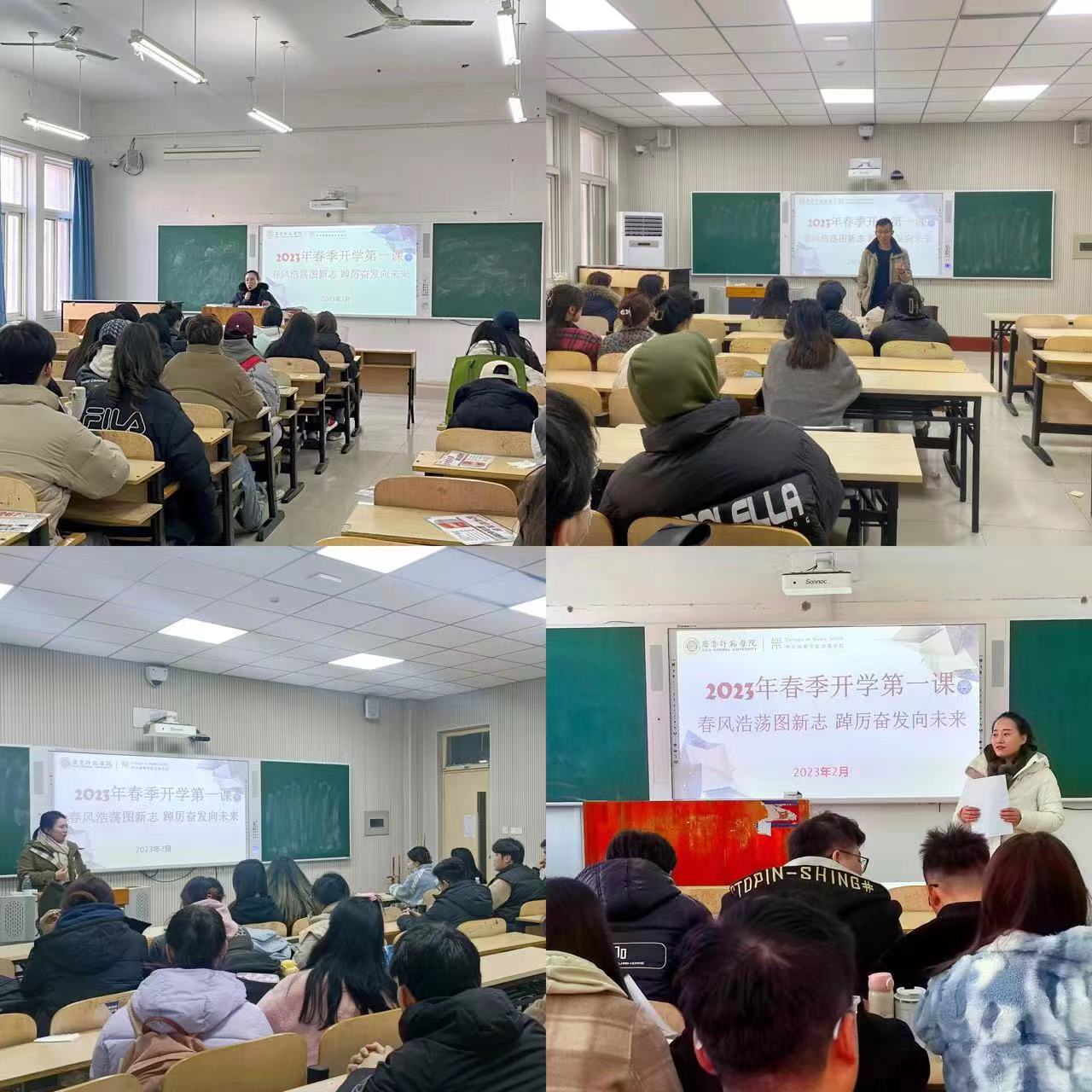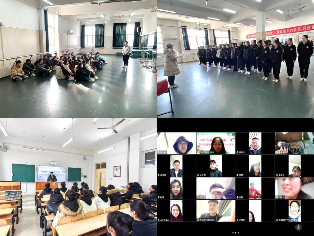 为深入贯彻习近平新时代中国特色社会主义思想和党的二十大精神,进一步加强大学生思想政治教育和安全教育,根据学校相关要求,春季学期开学伊始,音乐学院以“春风浩荡图新志 踔厉奋发向未来”为主题,为返校学生上好“开学第一课”。