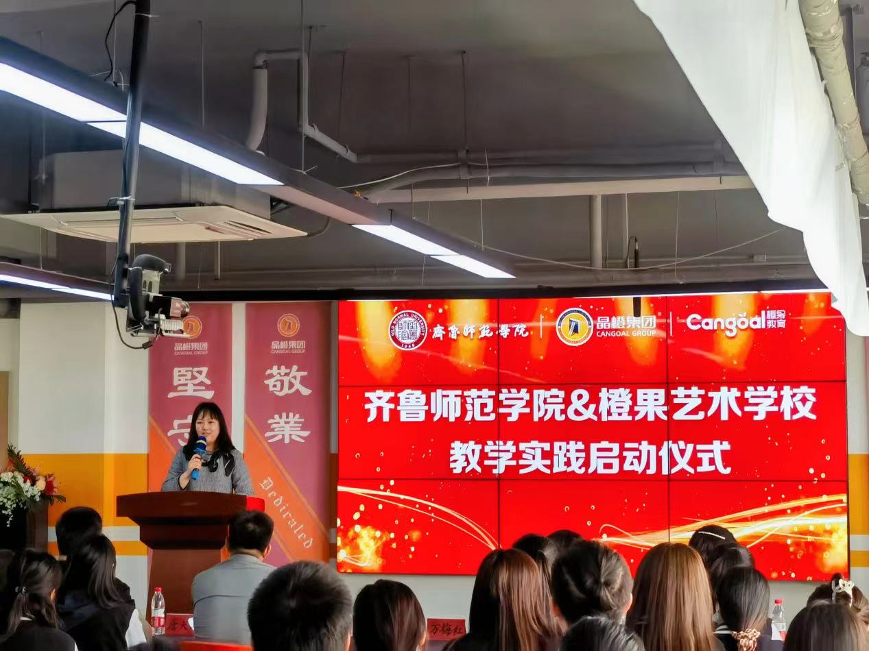 4月12日,齐鲁师范学院音乐学院院长万梅红带队抵达橙果艺术学校举行“齐鲁师范学院教学实践基地”暨揭牌仪式。音乐学院院长万梅红、副院长桑潇携教师代表出席,橙果艺术学院董事长王建军、教学总监唐大伟、运营总监李倩倩以及全体教师参加仪式。