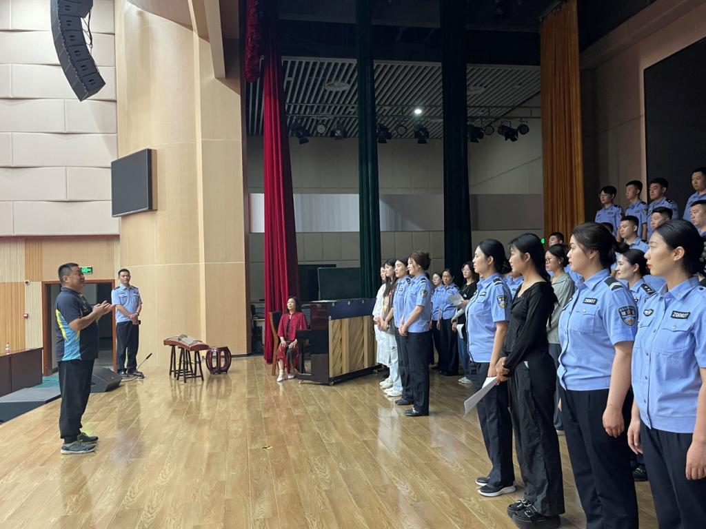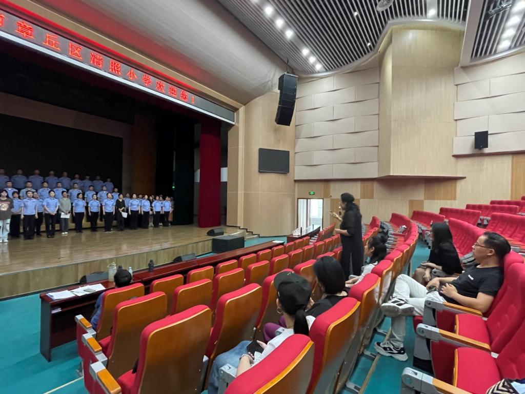 志愿者服务队在章丘清照小学礼堂,对章丘区公安局合唱团进行了现场指导。各位党员教师结合专业对合唱团演唱曲目过程中出现的问题提出了建议,针对每位队员进行了声部的界定,对发现的问题进行针对性训练。各位党员专业的讲解和示范受到了章丘区公安局领导与干警们的一致认可和好评。