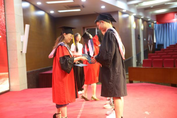 院长万梅红、副院长桑潇为同学们颁发学士学位证,并拨穗正冠。毕业生学位帽上的帽穗,从右边拨到左边,代表着一份肯定与衷心的祝福。这一拨代表着麦穗已经成熟,象征着同学们已学有所成,寓意新征程的开始,可以在社会中大展身手,乘风破浪,扬帆远航。