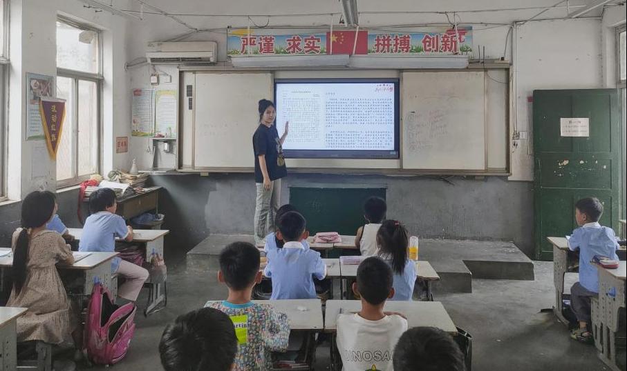 在商河县白桥镇中心小学,参与助学支教的党员结合小学生实际情况认真编写教案,用游戏的方式科普生活常识和科学知识,同时充分发挥专业特长,通过歌曲教唱、乐器演奏等实践课,让小朋友们在耳濡目染中感受并获得美的体验,引导他们发现美、感受美、创造美。