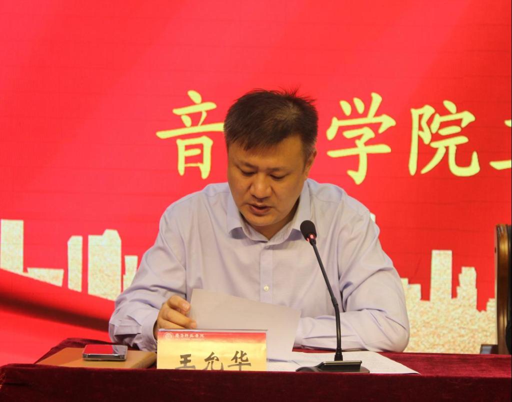 王允华代表音乐学院党委进行表态发言,表示音乐学院党委将以接受第一轮校内巡察检查为契机,高度重视,切实站在全局的高度看待巡察工作;严守纪律、全力配合,确保巡察工作顺利进行;及时整改,开拓进取、扎实工作,多谋发展之策,多行发展之举,努力推动音乐学院整体建设迈上新台阶、取得新突破、实现新发展,确保巡察工作取得实效。