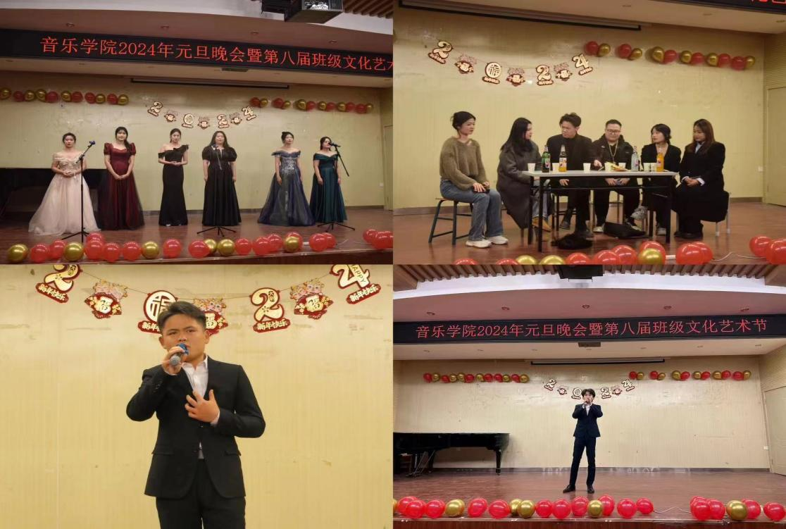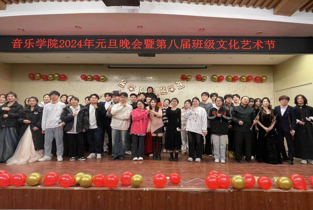 兔挥妙笔,春风点绿千行柳;龙舞漫天,喜雨嫣红一片桃。满怀收获的2023年即将过去,2024年全新开启。2023年12月27日,音乐学院元旦晚会暨第八届班级文化艺术节在音乐厅隆重举行。音乐学院党委书记王允华、党委副书记姜晨及全体辅导员与同学们齐聚一堂,共享盛会。