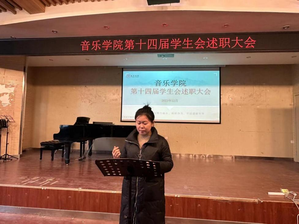 为加强学院学生会建设,进一步提高学生会的组织力、引导力和服务力。2023年12月25日,音乐学院召开了第十四届学生会述职大会。音乐学院学生会全体成员参加会议。