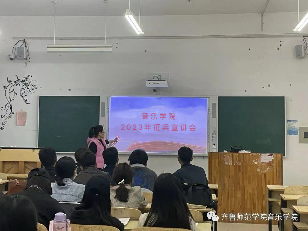 又是一年征兵季,正是参军报国时。为落实好征兵工作,鼓励音院学子积极从戎卫国。2023年3月16日下午2点,我院于2号教学楼121教室进行征兵宣讲活动。音乐学院党委副书记姜晨、毕业班辅导员朱琳、尹亚男及音乐学院学生代表参加宣讲。