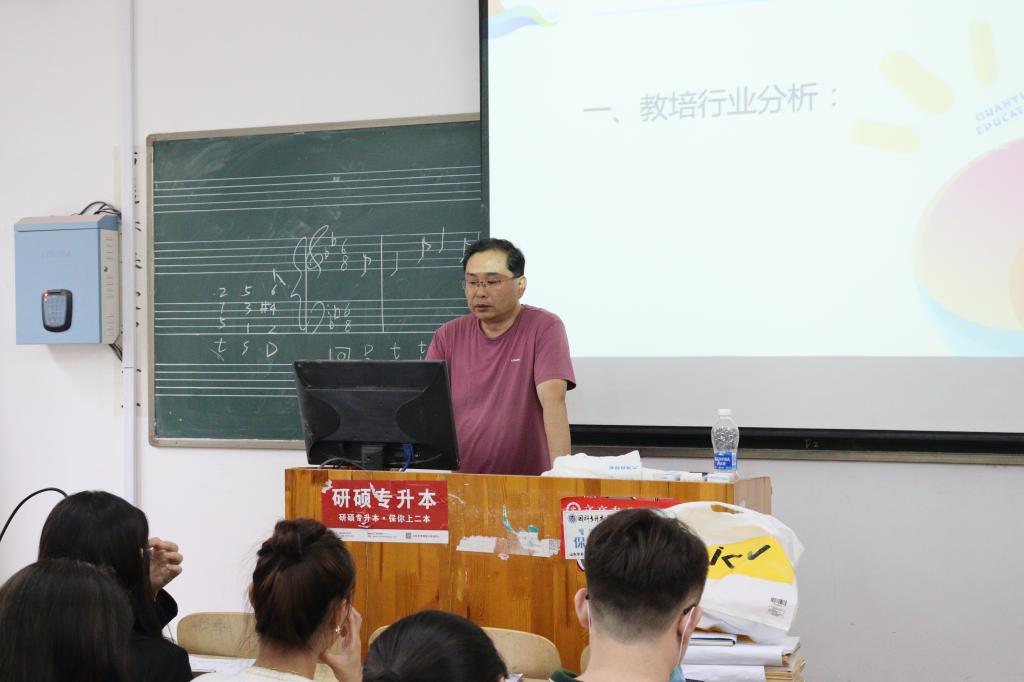 负责人宋老师与学生就未来职业发展规划展开讨论,分析了音乐培训行业发展行情及未来发展潜力。随后,负责人从发展历程、教学理念、教学方式、工作时间、员工要求、薪资结构、员工福利等方面进行了介绍。