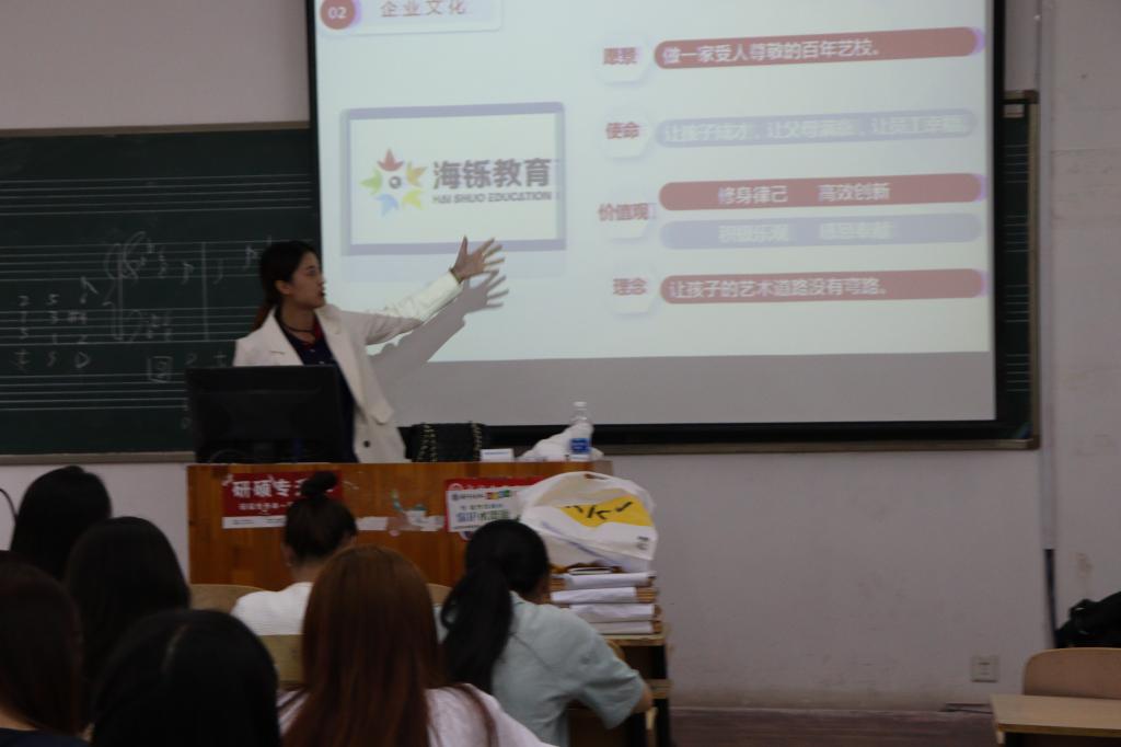 为帮助毕业生们提供就业思路和就业机会,更好的把握近些年来音乐教育行业的发展情况,音乐学院于4月20日下午举办了海硕教育培训学校专场招聘会。参会人员有音乐学院辅导员刘秋雨、海硕教育培训学校负责人以及2017级音乐学专业全体学生。