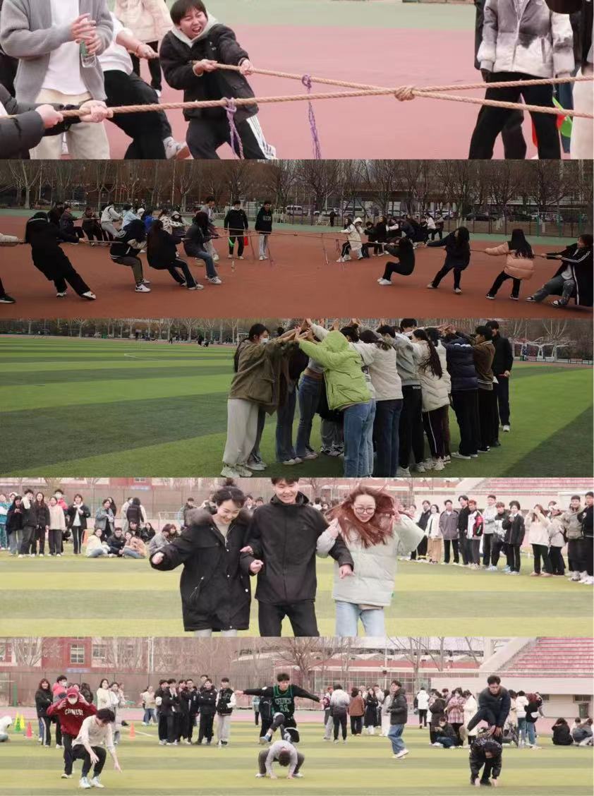 为充分体现团队精神,运动会的各项项目都以团队的形式开展,设置了班级四项拔河比赛、三人四足、翻山越岭、障碍接力跑、钻山洞比赛等趣味性和协作性于一体的比赛项目。运动场上,欢呼与呐喊交织,拼搏与汗水碰撞,操场上人声鼎沸,热闹非凡。通过比赛活动,进一步增进了同学们的团队意识、集体意识,团队协作能力,增进了同学们之间的友谊,也增强了各个班的凝聚力。