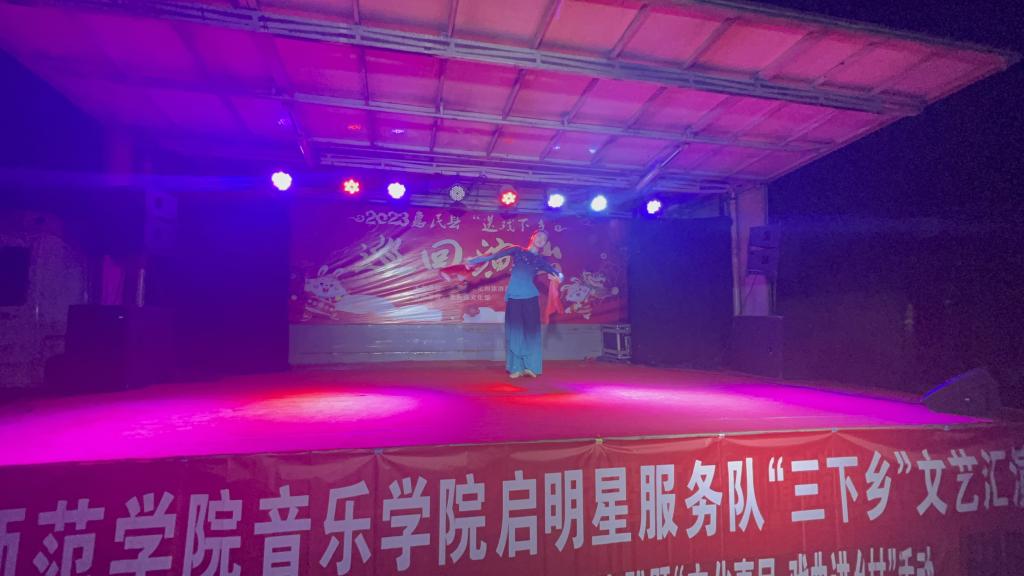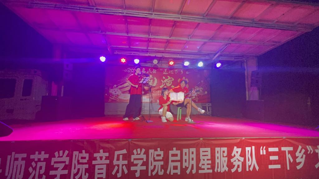 文化点亮青春,艺术赋能乡村。为丰富乡村文化生活,推动乡村文化振兴,7月11日,音乐学院“启明星”服务队送“乐”下乡文艺汇演活动在李庄镇杨把式村进行,志愿者们通过文艺节目,打通乡村文化服务,用青春力量助力乡村振兴。
