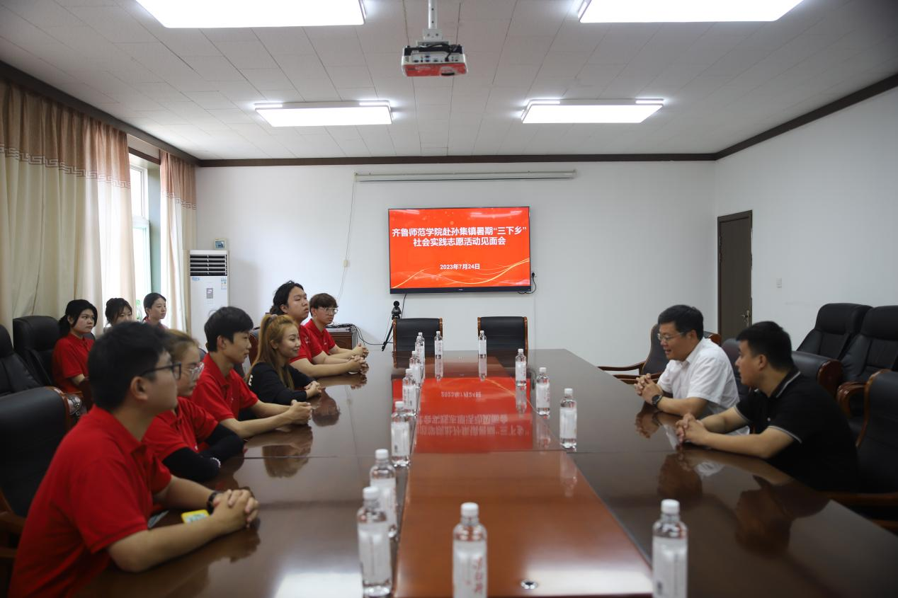 商河县孙集镇党委书记万金洪,党委委员、组织委员张祥军参与了此次实践活动见面座谈会。万金洪对齐鲁师范学院音乐学院师生的到来表示热烈欢迎,并对孙集镇的基本情况作了详细介绍。他表示实践队伍要高度重视安全问题,做到听从指挥、服从安排,希望可以以本次活动为契机,给孙集镇注入新鲜活力,实现全面共同发展。双方就实践内容、行程安排等进行深入交流。